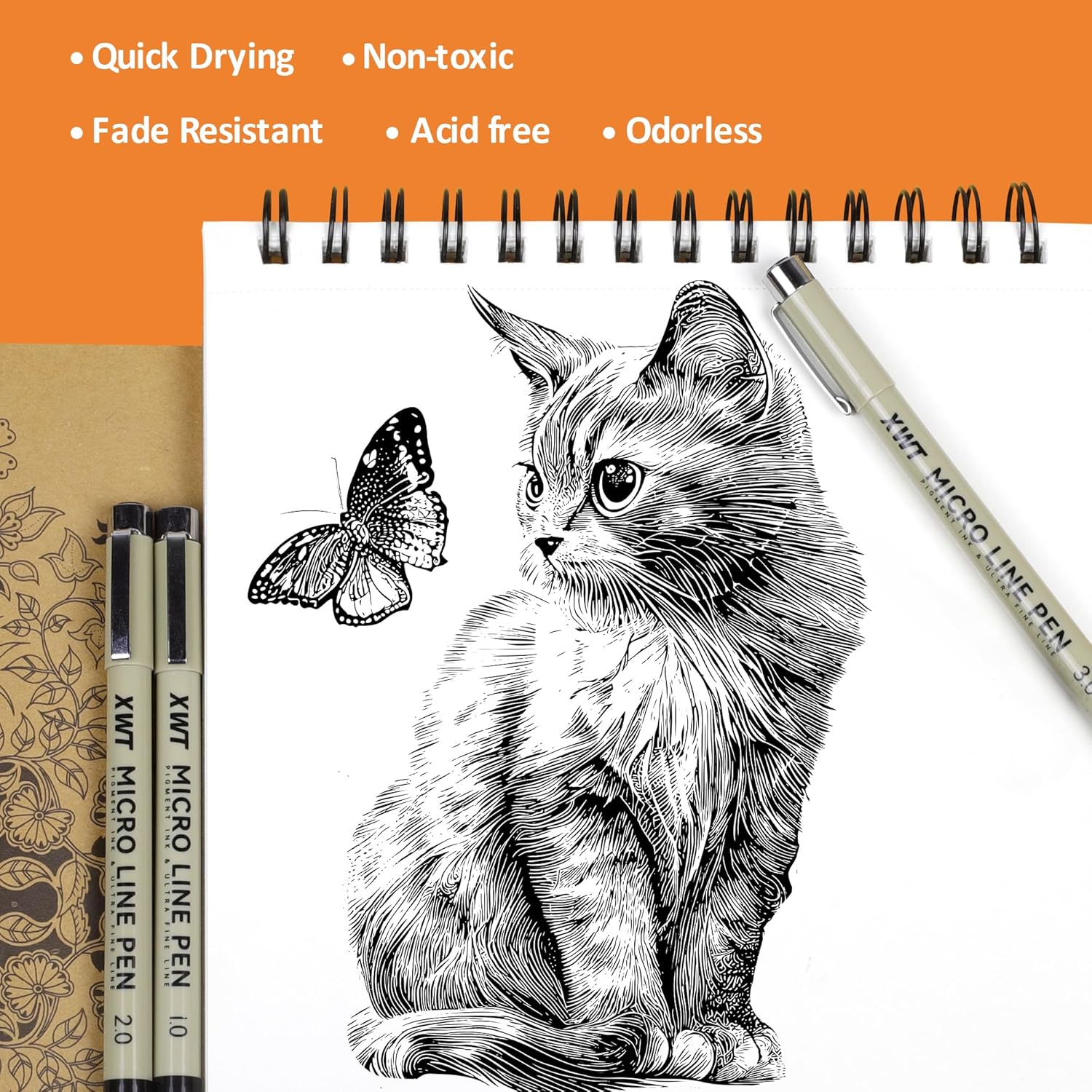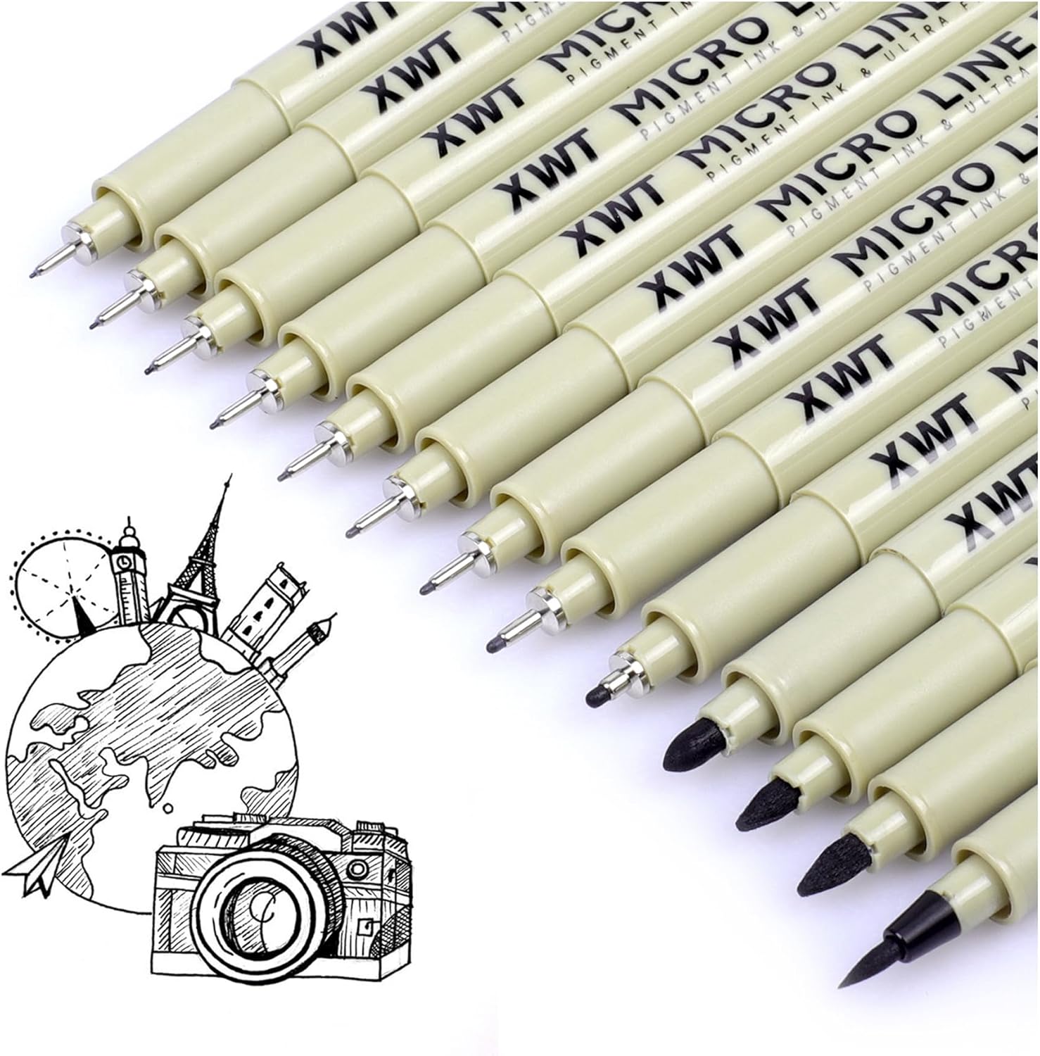 - Archival-Quality Pigment Ink – Waterproof & Fade-Resistant:XWT fineliner pens use rich black water-based pigment ink that is quick-drying, waterproof, sunproof, acid-free, and non-toxic. No smearing, ghosting, or bleeding through paper – ideal for long-lasting artworks, technical drawings, and note-taking.