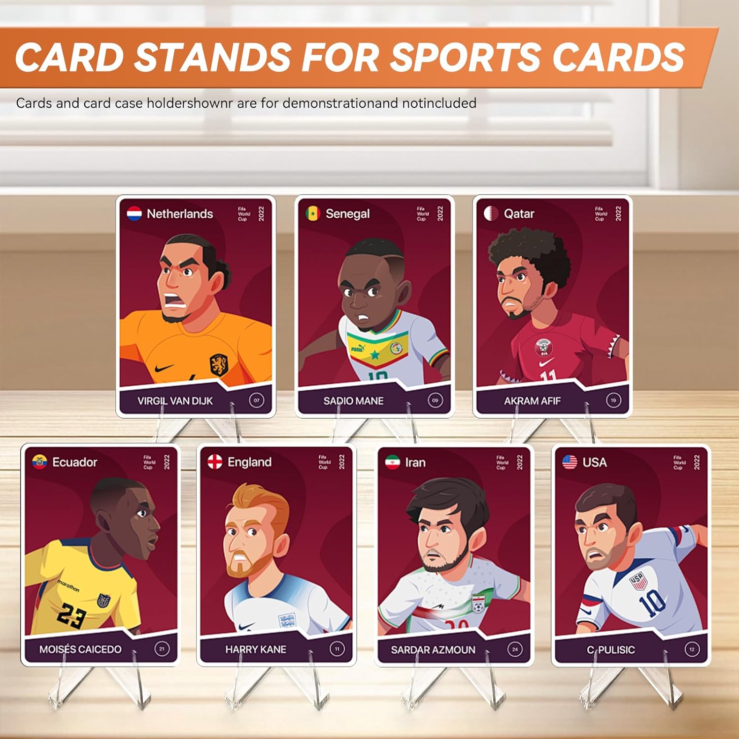 - Full Display for Details: The clear acrylic card display stand is unobtrusive but effortlessly showcases each card. The acrylic card stands for sports cards can highlighting and displaying your collectibles, memorabilia, or whatever you need to display. The card display stand which overlap your display items aren't too tall so you hardly see the stand, so the card stands for sports cards will not do anything else, but just keep everyone's eyes more focused on the thing your display.