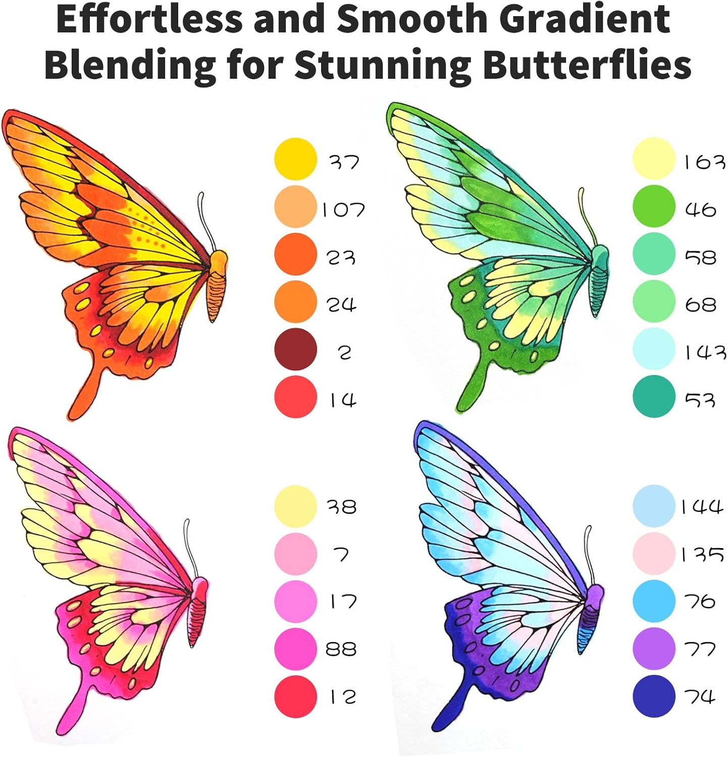 - 120 Vibrant Colors with a Blender Pen: This set of 120 alcohol markers is designed to enhance your creative projects. From detailed line work to bold shading, each vivid shade adds richness to your art. The kit also includes a 0 colorless blender to help you create smooth gradients and flawless blending effects.