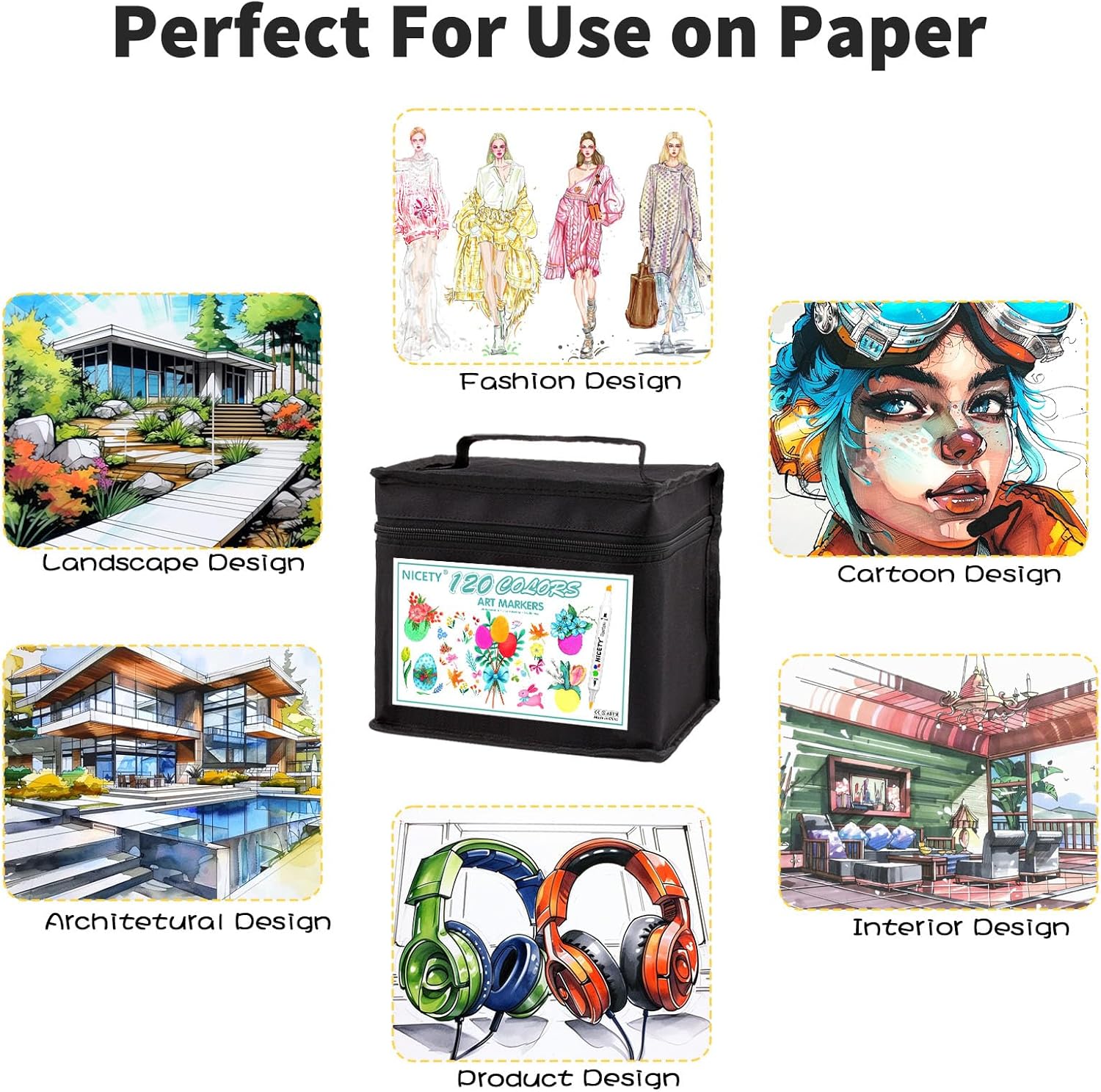 - Convenient Storage and Portability: Our alcohol marker set comes with a sturdy zippered carrying bag that includes built-in plastic slots. Each marker fits securely into its own individual slot, keeping them neatly organized and easy to access. Unlike loose storage models, this design prevents pens from moving around and ensures quick selection while on the go.