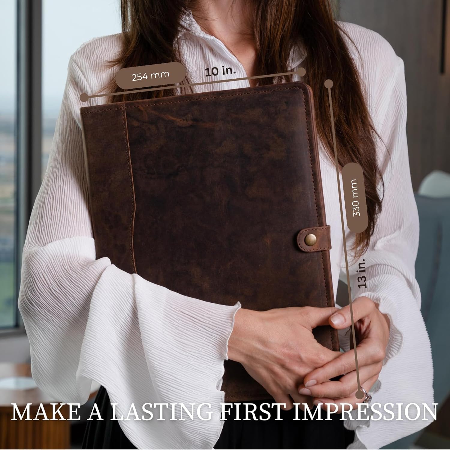 - Durable Holder- Our Leather Portfolio Binder is a multipurpose gem, serving as both a notebook cover and a sleek padfolio. Its stylish design garners compliments, and it provides a durable holder for your resume and legal pad, ensuring their protection and security.