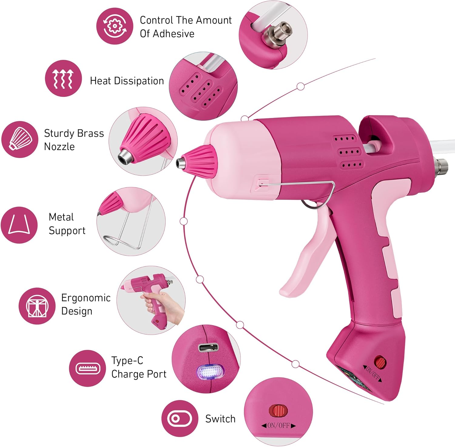 - Safety and Efficiency:This pink hot glue gun makes your experience both safe and easy! The built-in safe lithium battery supports Type-C convenient charging and the anti-scald shell can effectively prevent accidental burns