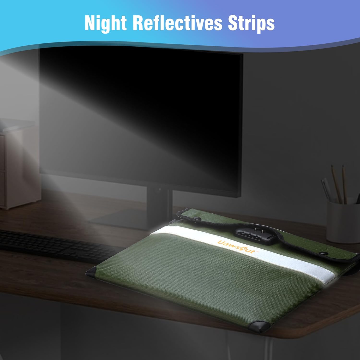 5200℉ Fireproof Document Bag with Lock, Portable Money Bag with Zipper Closure, Waterproof Envelope with Reflective Strip for A4 Letter, Tablet, Valuables, Cash and Passport(14.3"x11.2", Green)