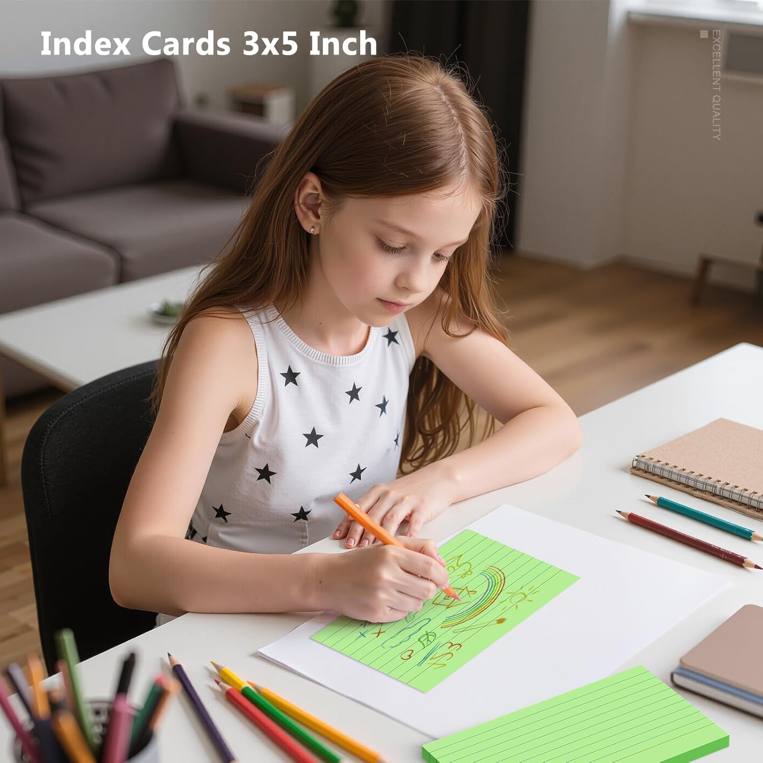 600 Count Index Cards 3 x 5 Inch Green Lined Flash Cards Ideal for Studying and To-do-List, Portable Note Cards Taking for Students and Teachers, Flash Card Styled for Home, Office or School Use