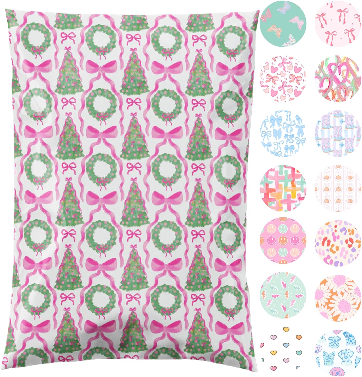 6x9 Designer Poly Mailer 100 Pack Heavy Duty Waterproof Self Seal Shipping Bags for Small Business Large Mailing Envelopes Bulk Tear Resistant Packaging Coquette Christmas Holiday Bows