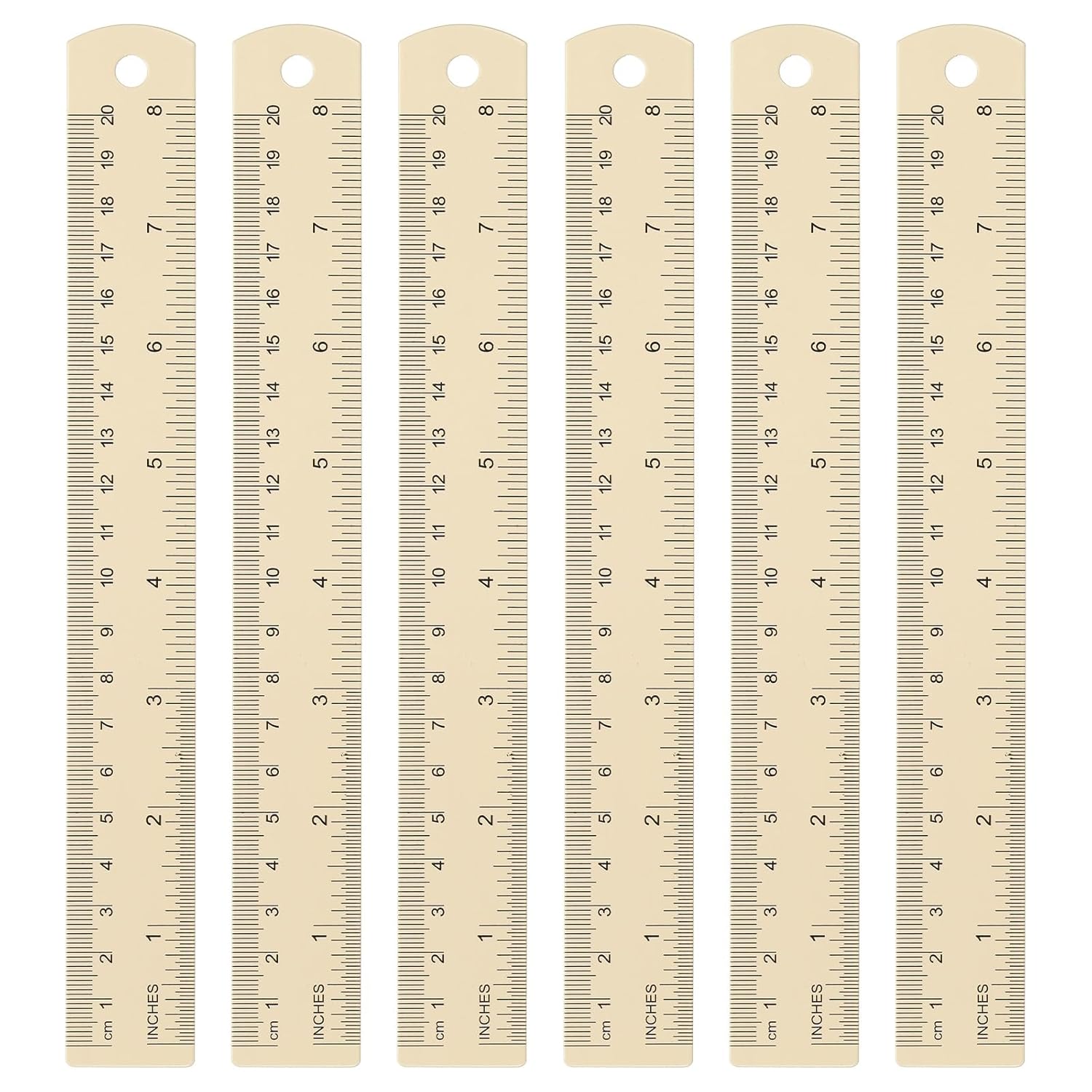 HARFINGTON 6pcs Metal Straight Ruler 20cm Metric SAE Aluminum Alloy Measuring Rulers Scale Tool with Hole for Measure Study Reading Classroom Office, Beige