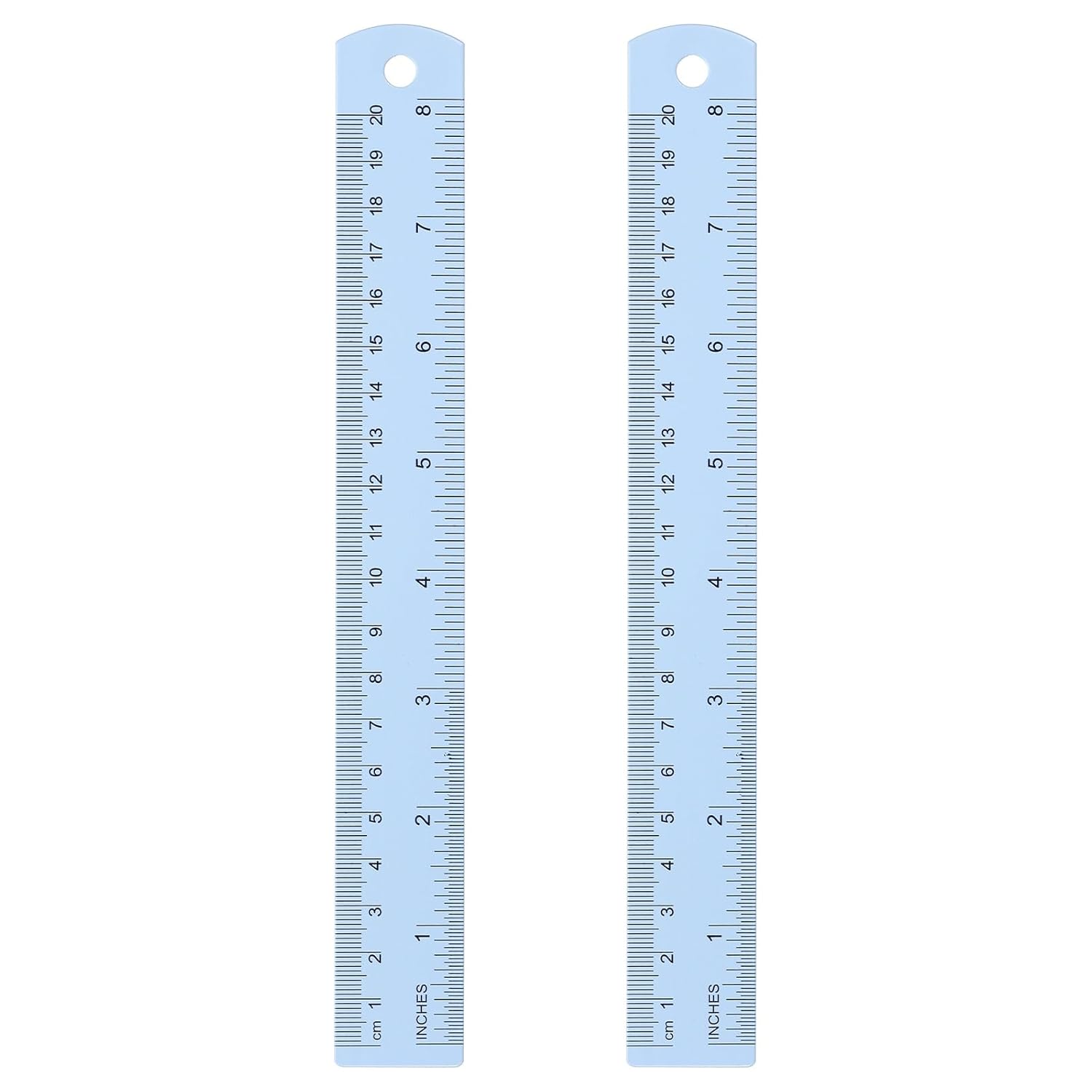 HARFINGTON 2pcs Metal Straight Ruler 20cm Metric SAE Aluminum Alloy Measuring Rulers Scale Tool with Hole for Measure Study Reading Classroom Office, Light Blue