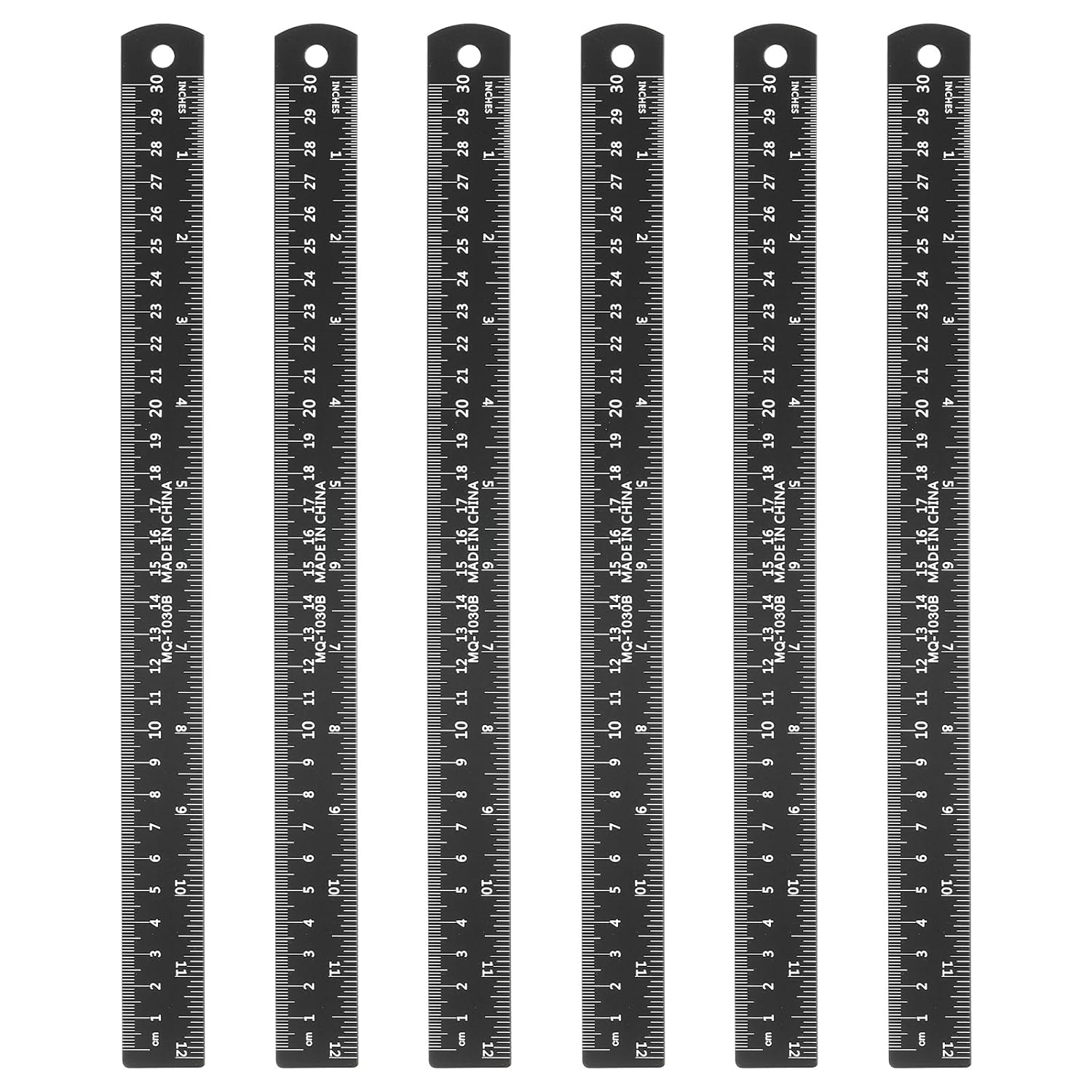 HARFINGTON 6pcs Metal Straight Ruler 30cm Metric SAE Aluminum Alloy Measuring Rulers Scale Tool with Hole for Measure Study Reading Classroom Office, Black