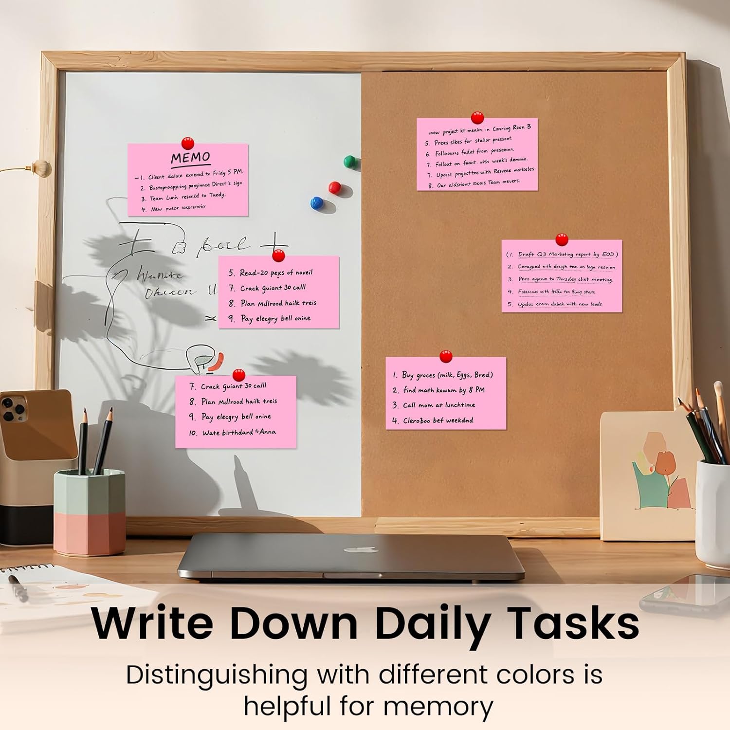 - GOOD VALUE: The Pink blank index cards have 6 packs (50 sheets per pack, totaling 300 sheets) . It has great multiple colors. The note cards paper is made of thick premium paper, with a size of 3x5. It is convenient to carry and can be easily put in a pocket.
