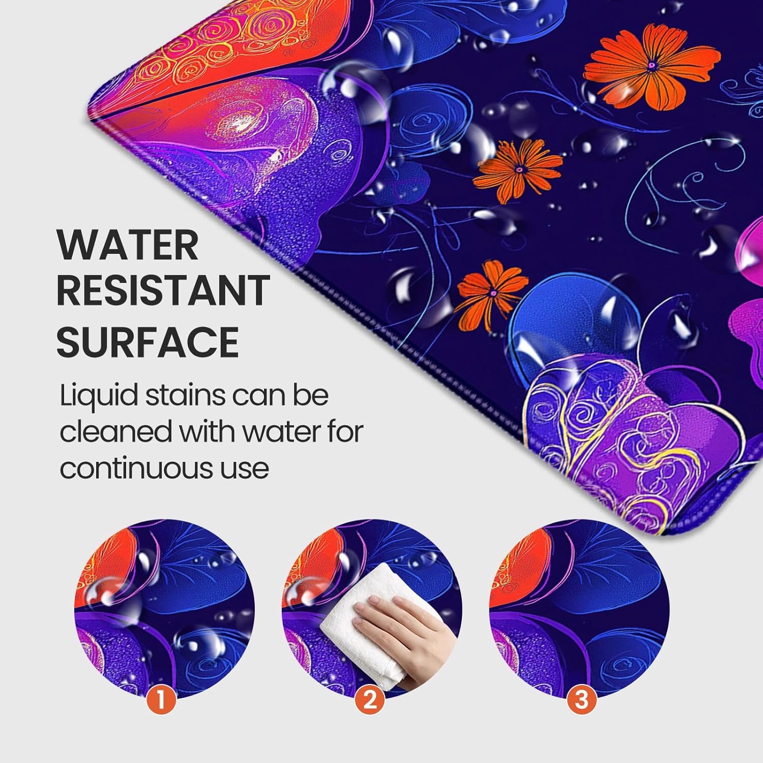 - 【Waterproof & Smooth Surface】Enhanced with nano-coating technology, this waterproof table mat protects the tabletop from scratches, resists liquid spills and sweat stains, is easy to clean, just wipe it with a damp cloth or paper towel, the precisely textured surface ensures perfect mouse tracking accuracy for competitive gaming, while the durable stitched edges can be used for a long time.