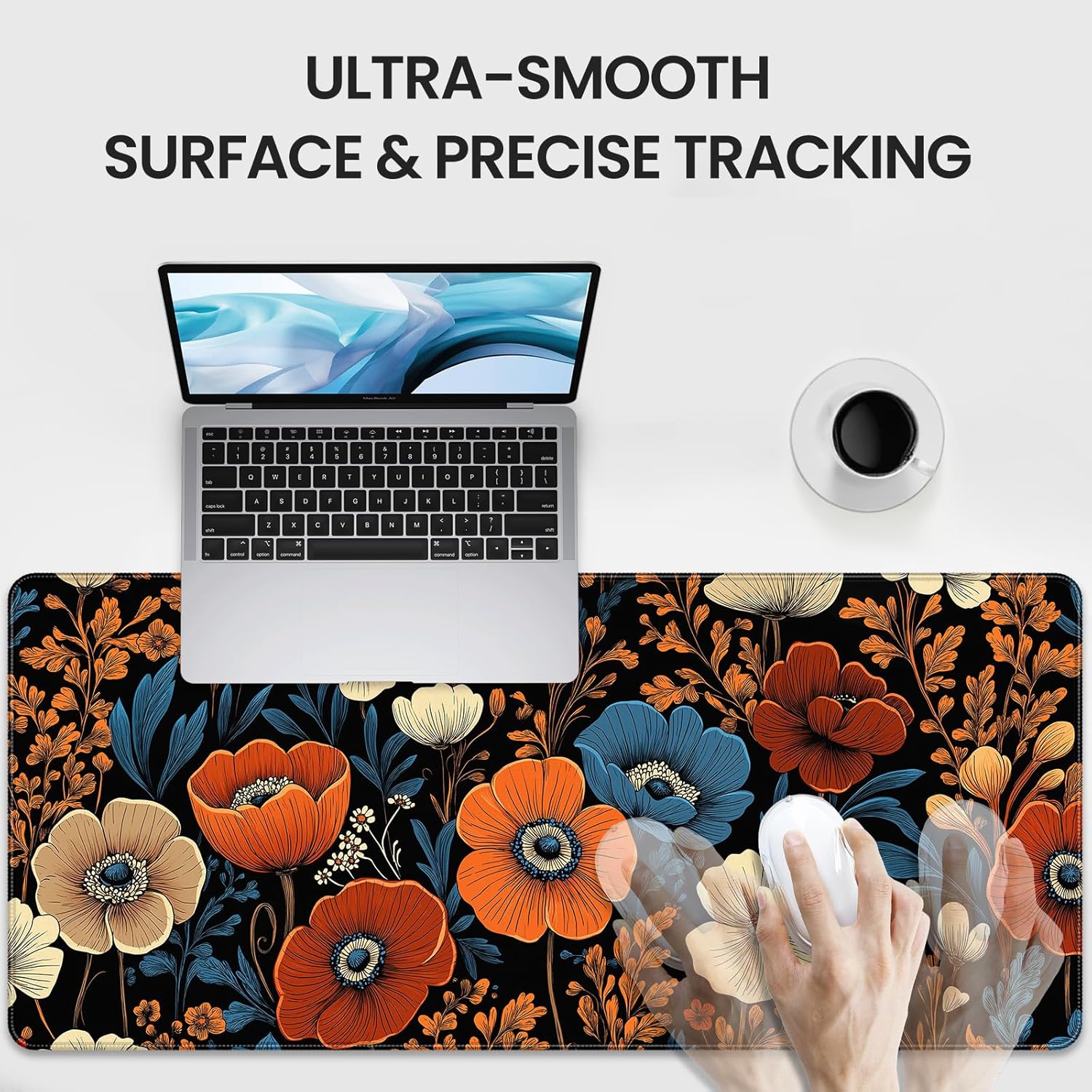 35.4 x 15.7 inches, Large Desktop Mouse pad, Keyboard and Mouse Pads for Work and Home Computers, and Large Laptop Mouse mat,Orange Blue Flowers