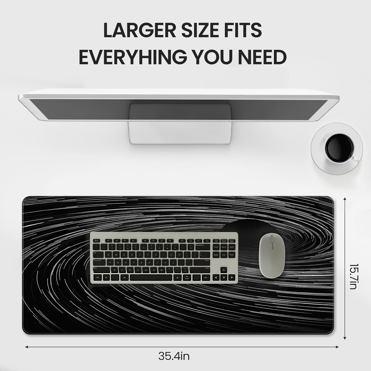 35.4 x 15.7 inches, Large Desktop Mouse pad, Keyboard and Mouse Pads for Work and Home Computers, and Large Laptop Mouse mat,Black Swirl Lines