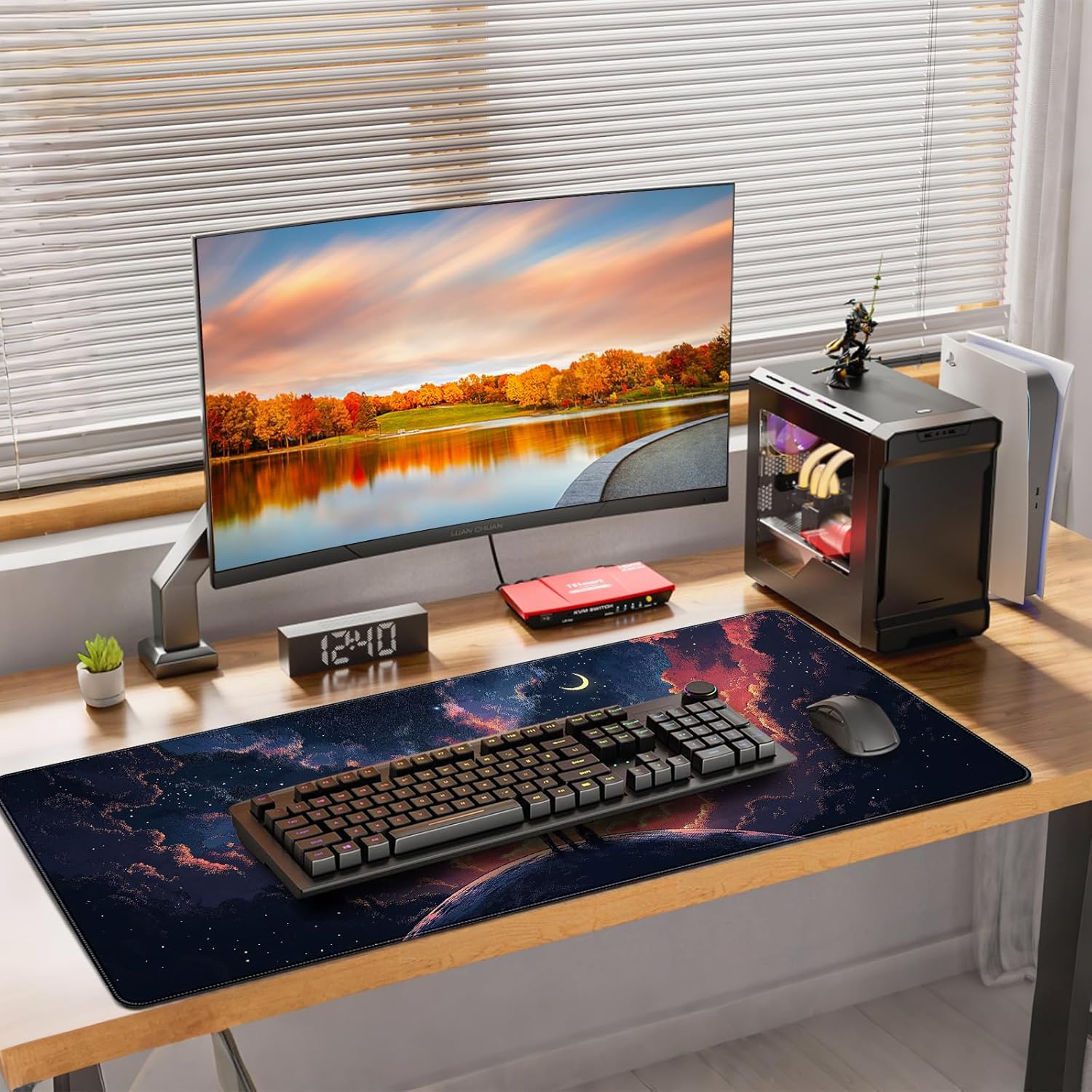 - 【XXL Extended Mouse Pad】Our 35.4" x 15.7" (900x400 mm) extra-large mouse pad provides ample space for keyboard and mouse to move around and meet the needs of a variety of task workers. The thickness of 3 mm provides optimal comfort during long gaming or office work while protecting your desktop surface.