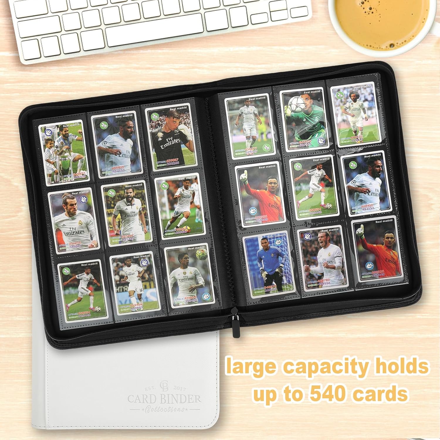 9 Pockets Card Binder,Premium Zip Trading Card Binder,540 Double Sided Pocket PU Collection Binder, Collector Album, Card Folder for MTG, TCG, Business Cards.(White)