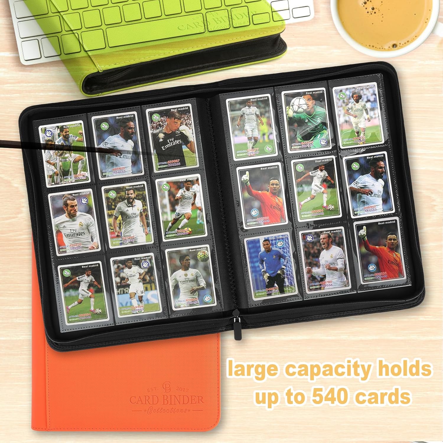9 Pockets Card Binder,Premium Zip Trading Card Binder,540 Double Sided Pocket PU Collection Binder, Collector Album, Card Folder for MTG, TCG, Business Cards.(Hermes Orange)
