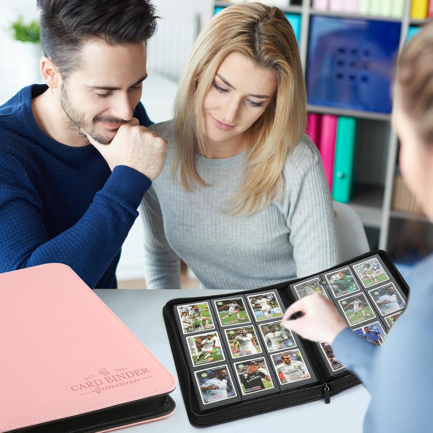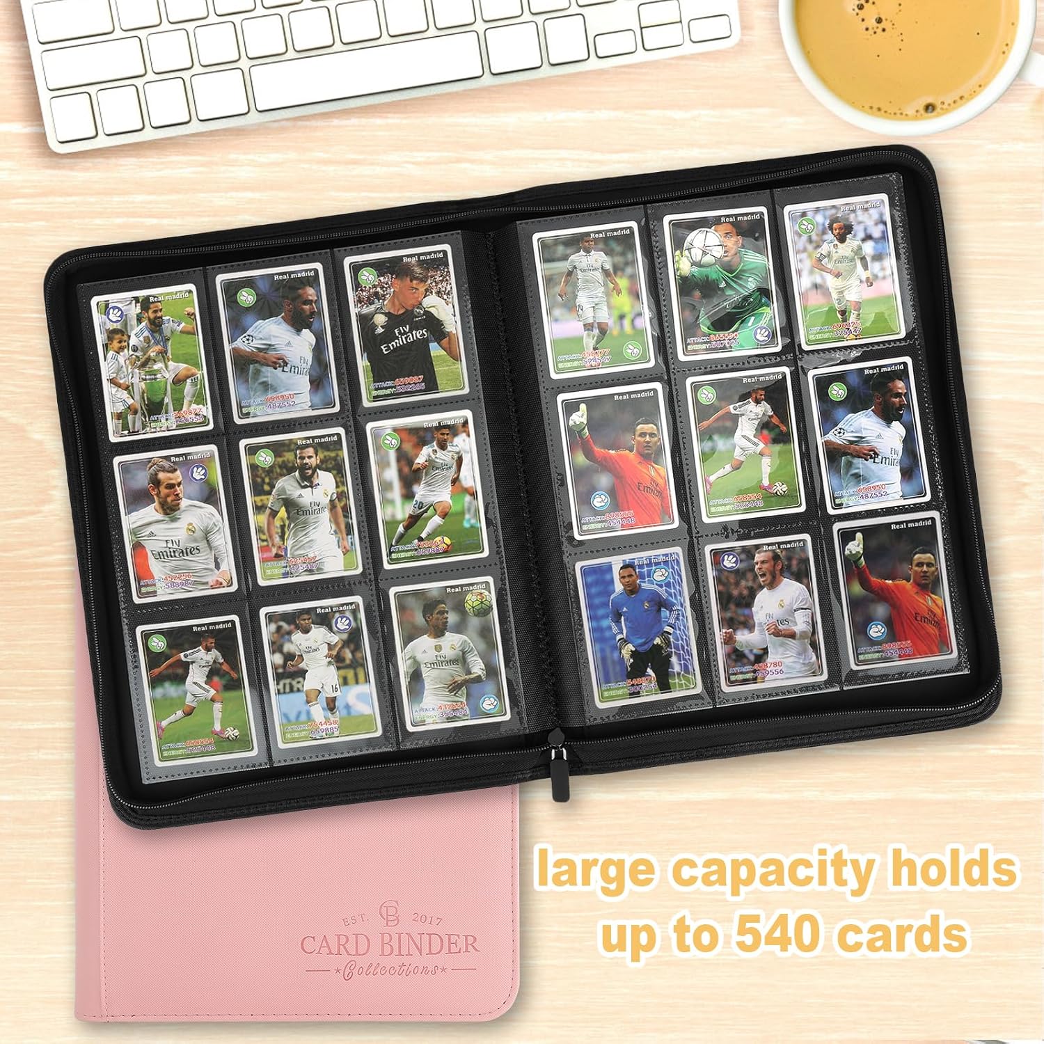 9 Pockets Card Binder,Premium Zip Trading Card Binder,540 Double Sided Pocket PU Collection Binder, Collector Album, Card Folder for MTG, TCG, Business Cards.(Pink)