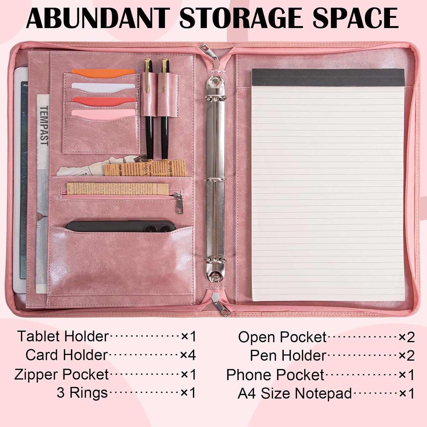 - 【Secure and Versatile - Padfolio with Zipper】The portfolio with 3 ring binder features a zipper to ensure the safety of your resumes, important documents, laptop, and cards. Additionally, the interior of padfolio for men include multiple compartments, keeping your essentials neatly organized and within easy reach, helping you stay confident and composed during interviews and work.