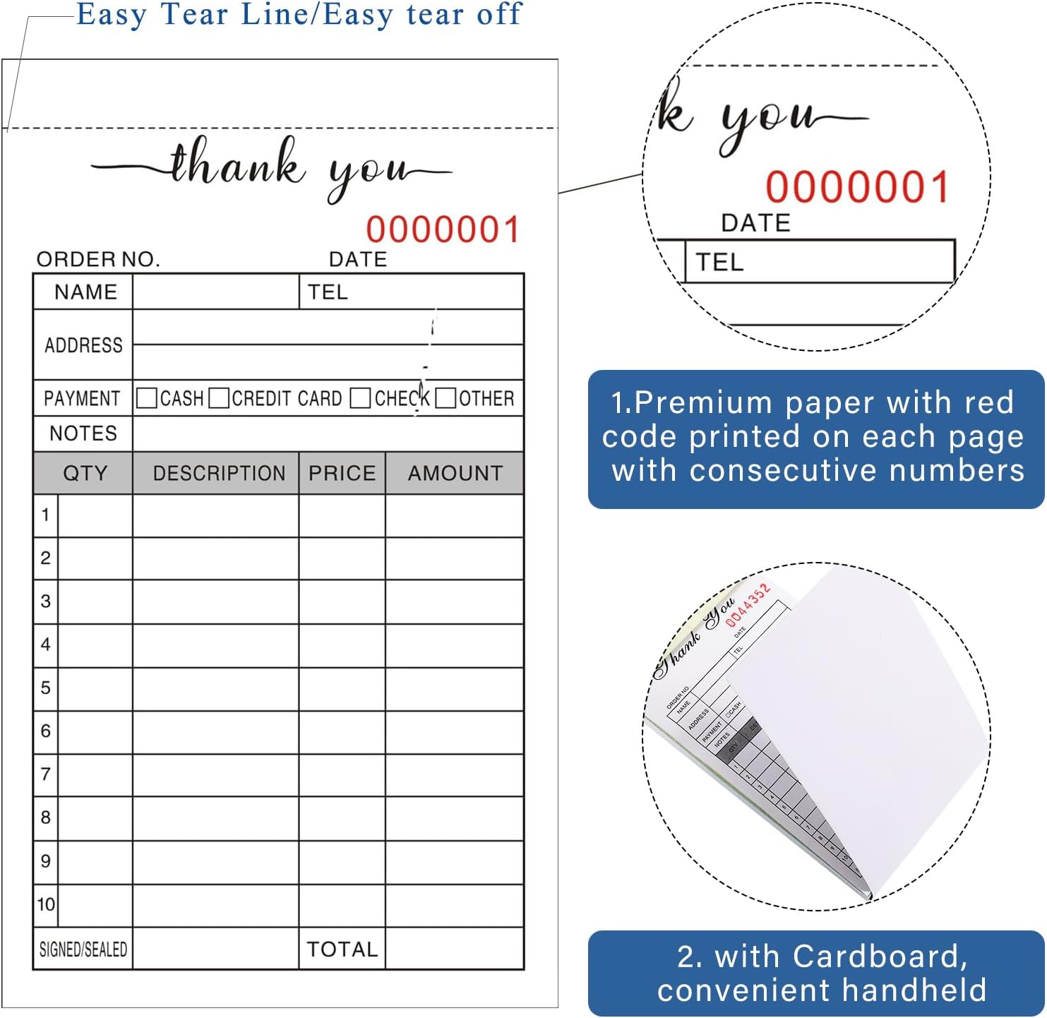 6 Pack Thank You Receipt Book, 3.4x5.5" Handheld 2-Part Carbonless Sales Invoice Book, Invoice Pad with Cardboard for Small Boutique Business, (50 Sets)