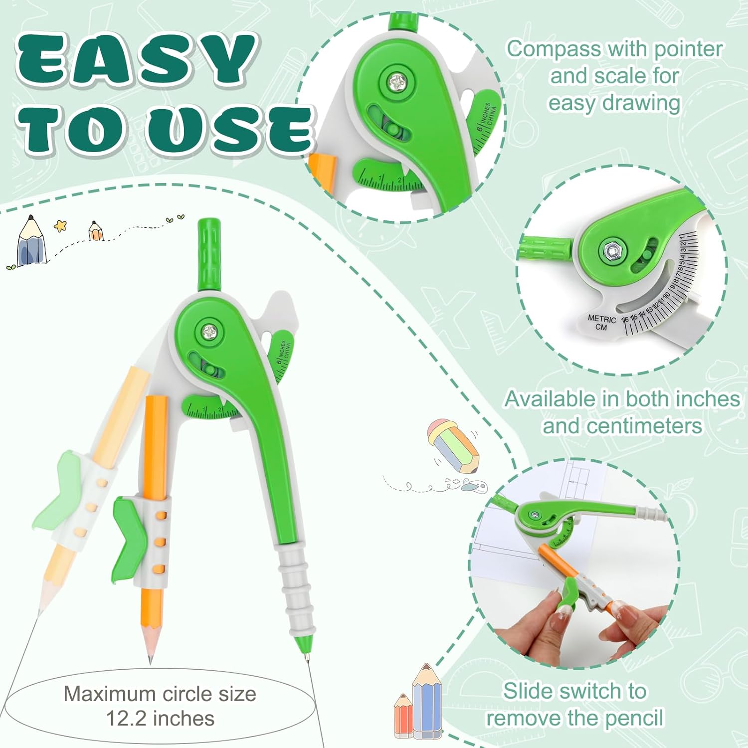 - Ideal Size: The 5.74-inch mathematical compass for geometry is well-suited for various applications; each comes with a 3.34 inch pencil that can be replaced when needed. The math compass can draw circles up to 12.2 inches in diameter and accommodates pencils, markers, and pens up to 0.3 inches in diameter, making it ideal for drawing projects and drafting