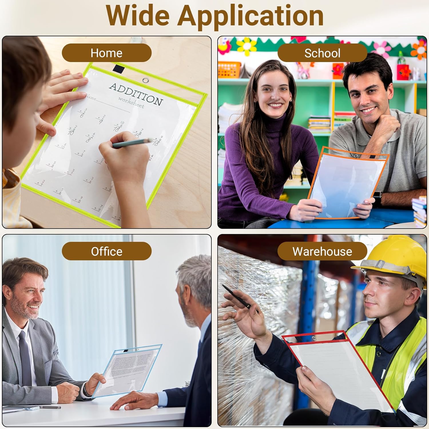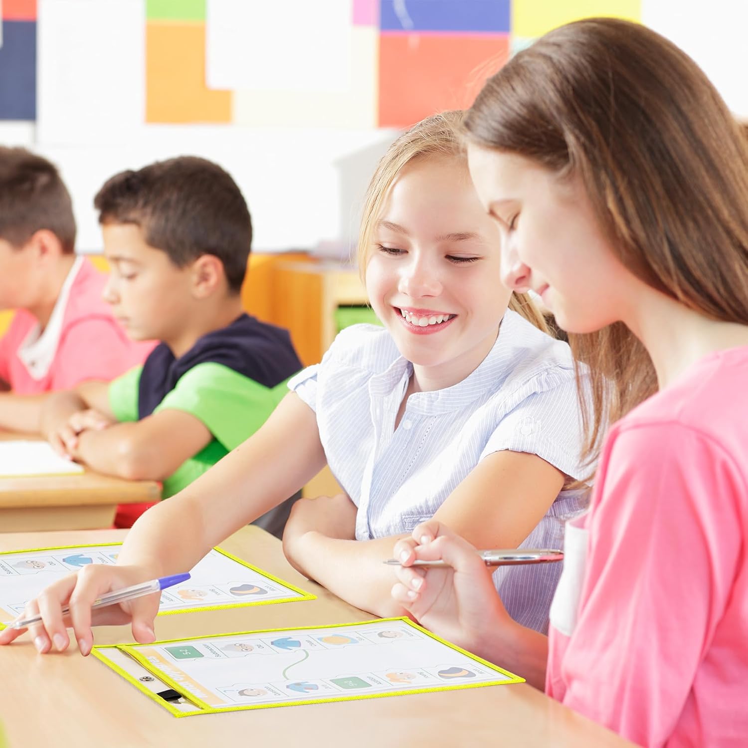 - Reusable Plastic Sleeves: These pocket protectors are transparent and reusable, can easily erase writing from surfaces, helping to save ink, copy paper and printing time. It can be used in the classroom as a dry erase board, a must-have for the classroom