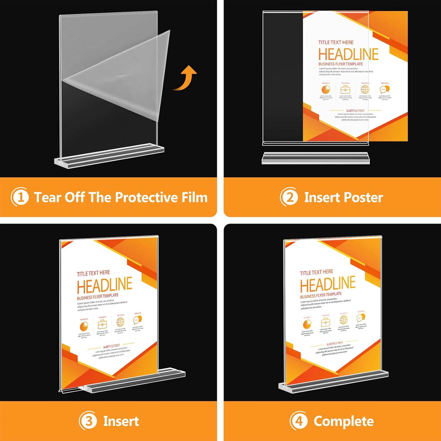 - Widely Used: 12 Pack 8.5x11 acrylic sign stands can meet your different needs, it can display flyers, advertisements, menus, etc, and can be used in restaurants, offices, bar counters, vendor events, or small business supplies.