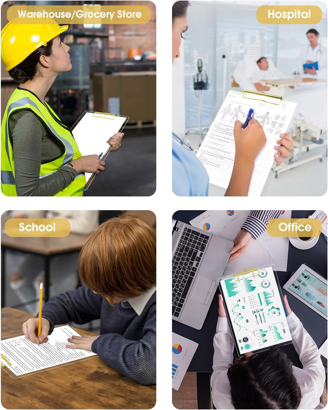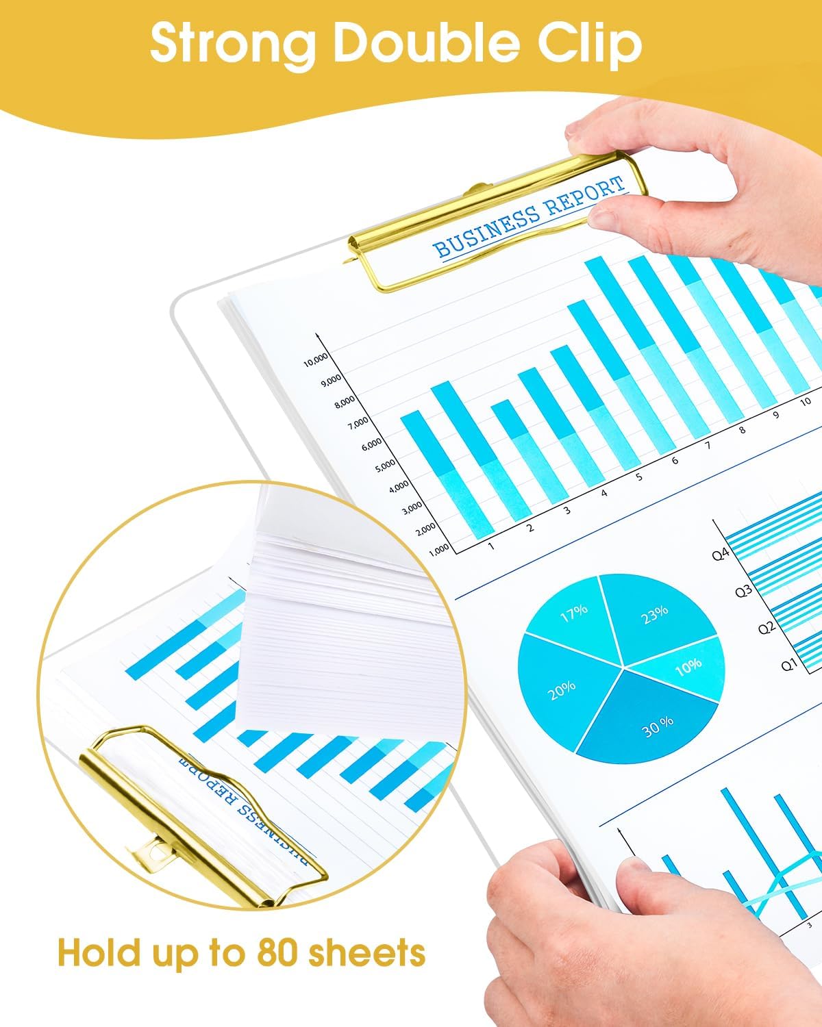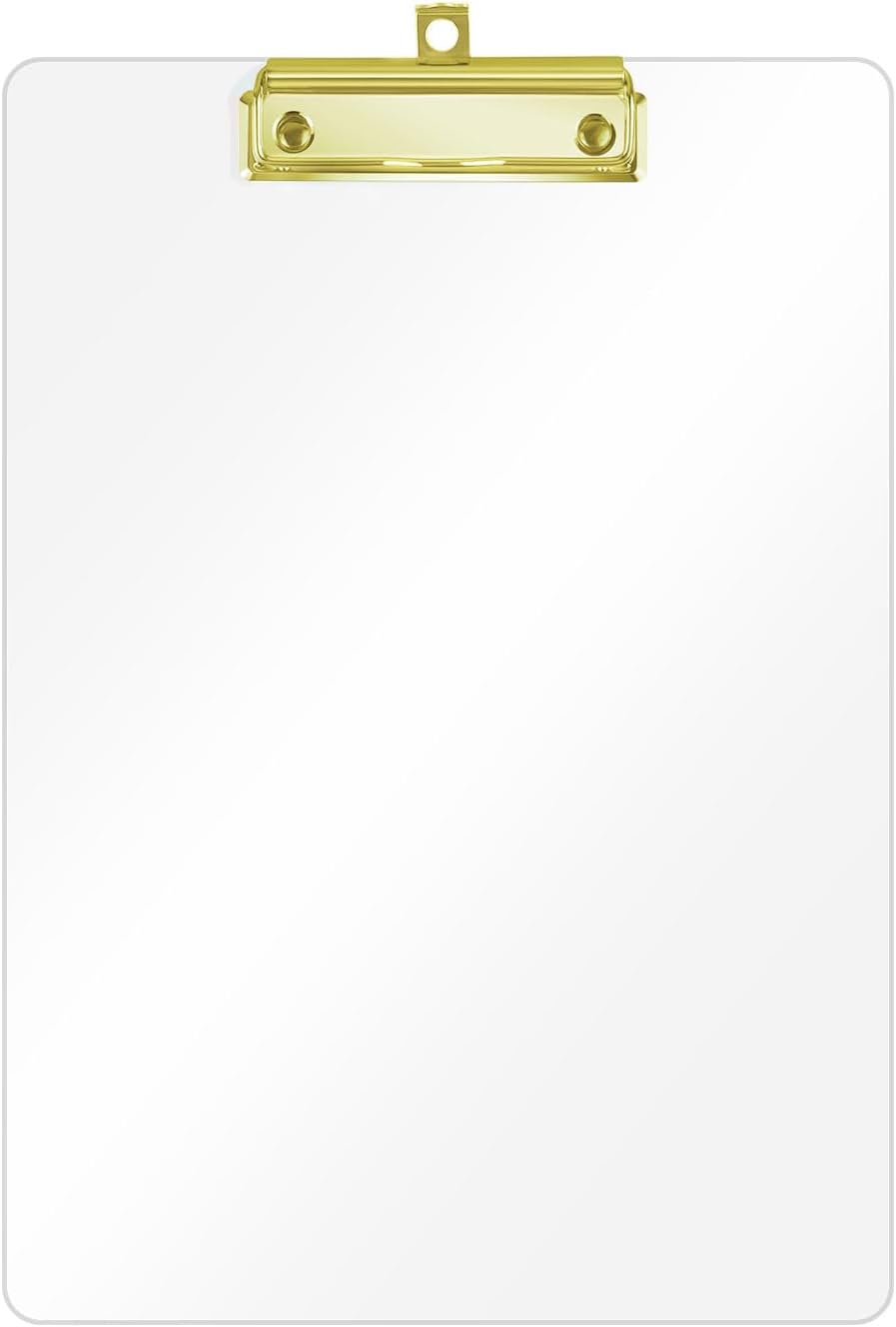 Honagu Acrylic Clear Clipboards, Transparent Plastic Clipboard with Gold Strong Clip Hidden Hanging Hole, A4 Letter Size Clipboards for Nurses, Art Student, Teachers,School & Office Supplies, 1PC