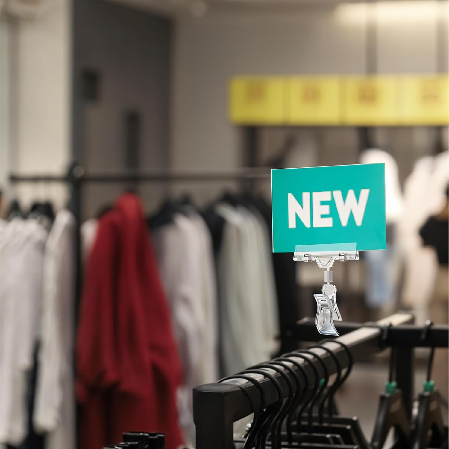 - Reassuring Quality of Details: Our sign holder clips are made of high-quality durable acrylic plastic material that is reusable, reliable, durable, clean, and adjustable. These sale sign holder clips for clothing rack rotatable design allow you to adjust the angle for optimal visibility, which can firmly fix label signs to 90° tilt or 360° rotate the sign in any direction you want to display. Ensuring your customers can easily view pricing and product information.