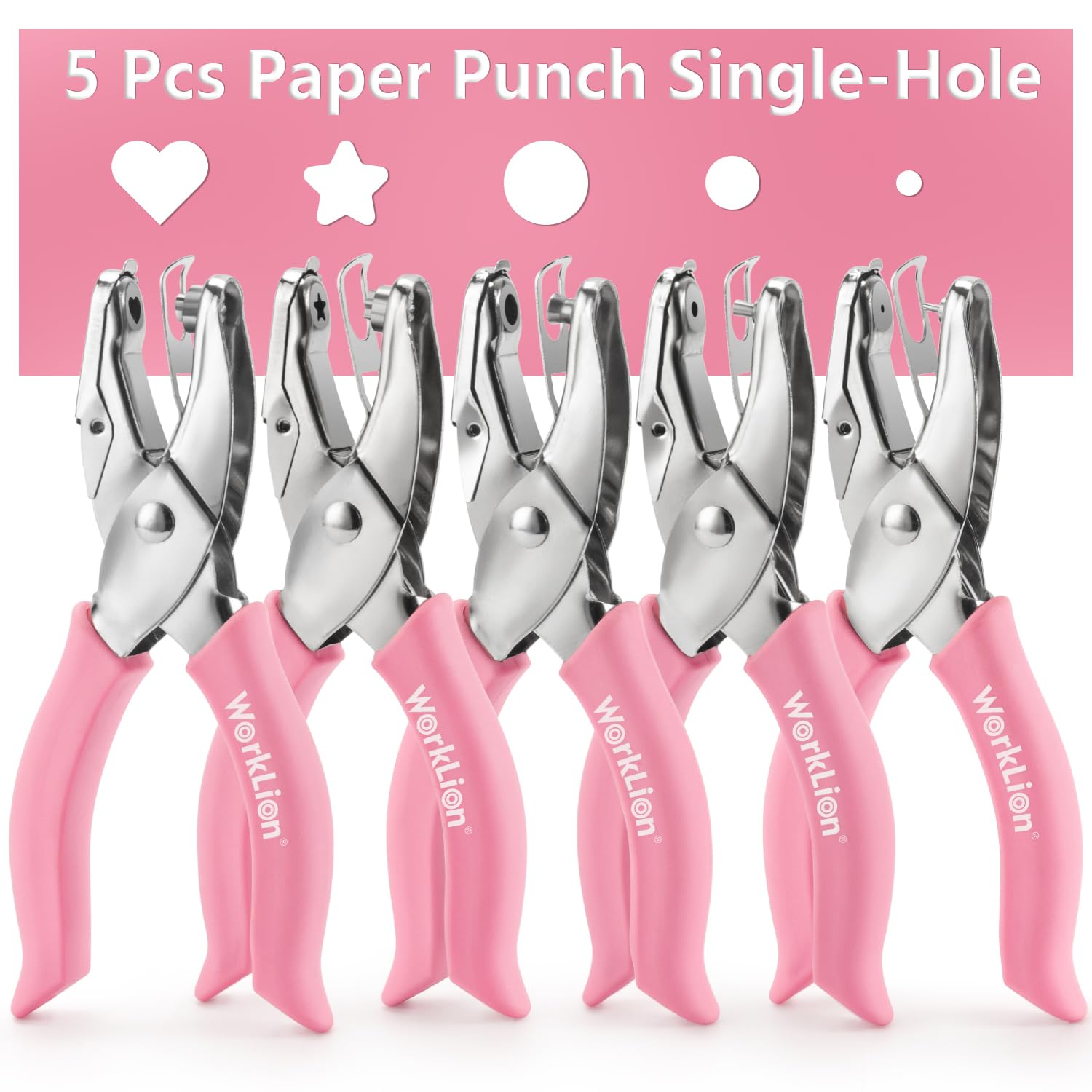 - 【Durable Metal & Soft Pink Grip】 Made of durable steel for punching up to 5 sheets of paper(70g) or rewarding cards. Ergonomic pink silicone handles reduce hand fatigue and provide a secure, comfortable grip – ideal for kids and adults.