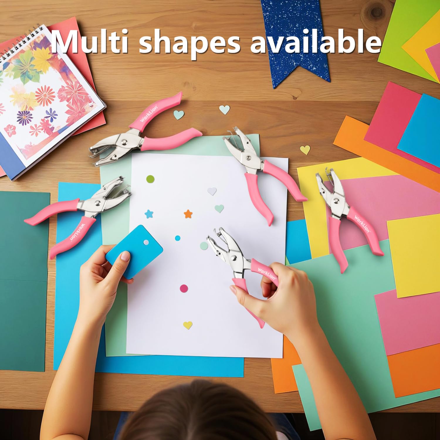 - 【5-in-1 Multi-Shape Punch Set】 Includes 1 heart punch,1 star punch,and 3 circle punches (1/4", 1/8", 1/16") in one kit. These lightweight hole punchers fit in pencil cases, backpacks, or craft kits. Take them to school, offices, or DIY workshops for on-the-go hole punching.