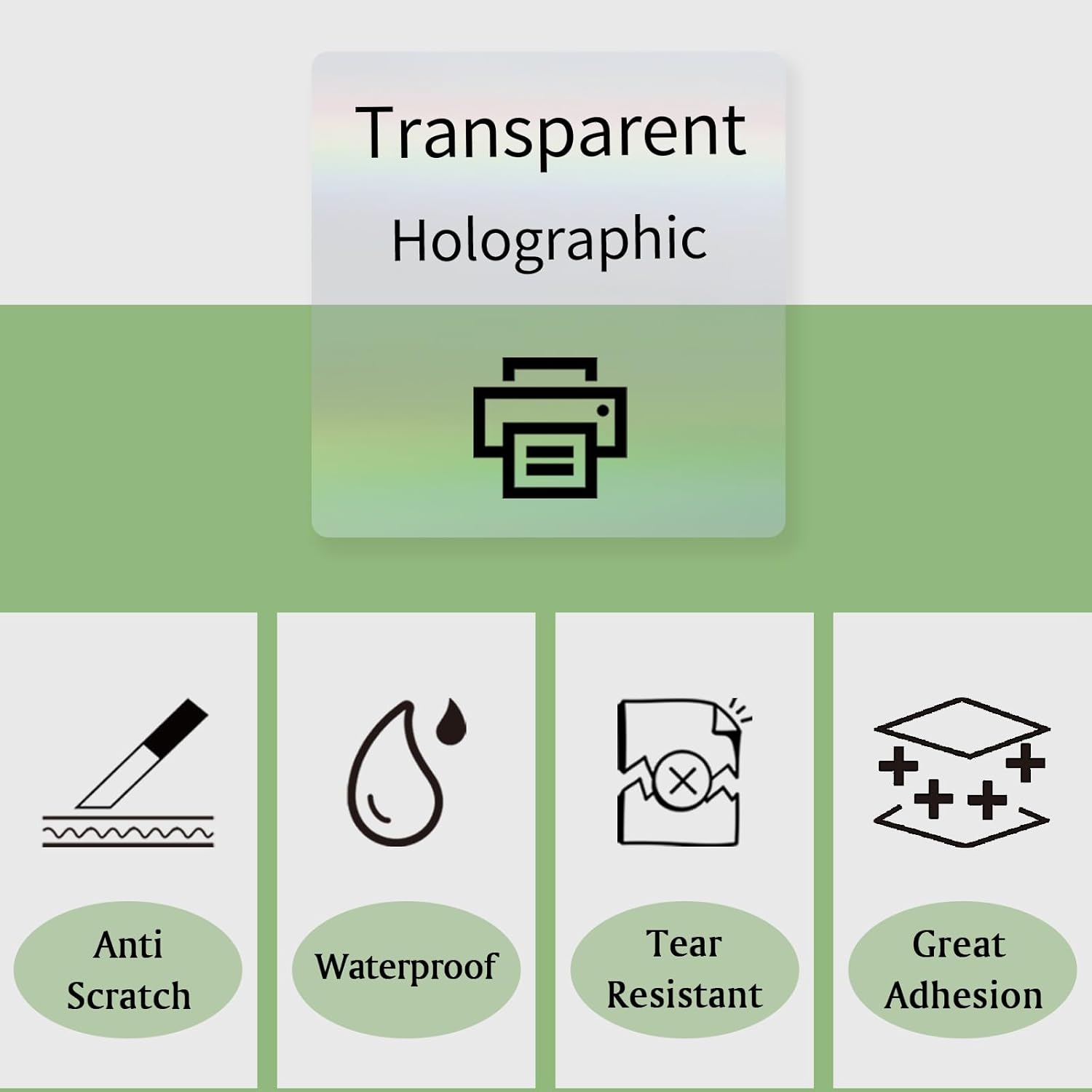 - Transparent Holographic Thermal Label, The color of the surface of the sticker can be changed under the light with the move, which is beautiful and charming