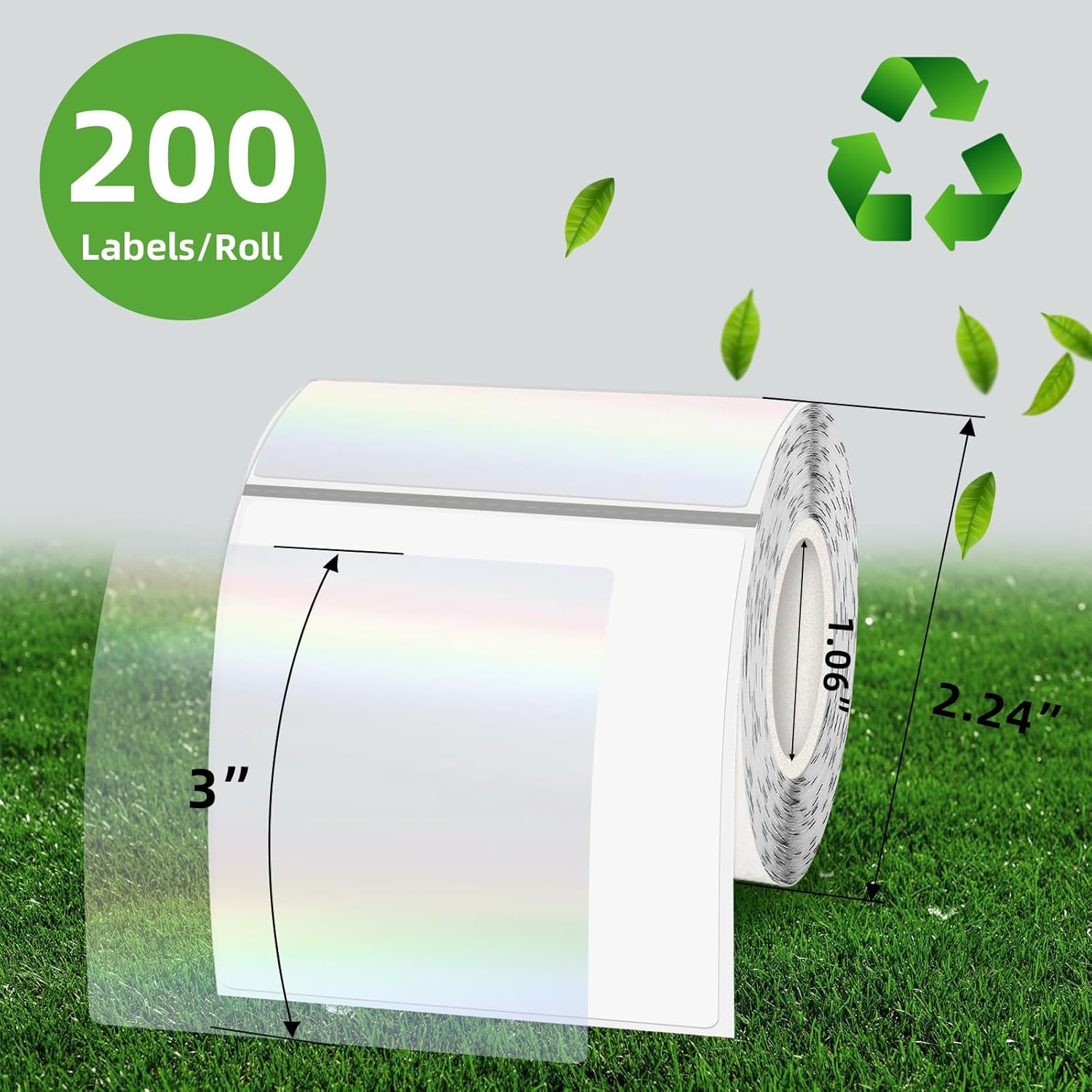 - 3" Square Transparent Holographic Thermal Sticker Labels, 200 Labels/Roll. Clear labels for thermal printer, No ink toner or ribbons are needed