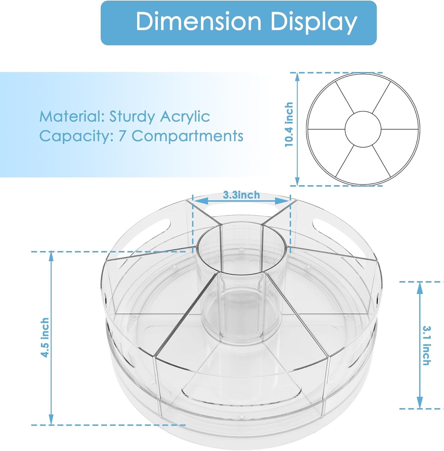 2 Packs Pen Organizer for Desk - Acrylic Pen Holder with Hand Grips, 360° Extra Large Rotating Desk Organizer with 7 Removable Compartments for Office, Home, and Makeup Storage