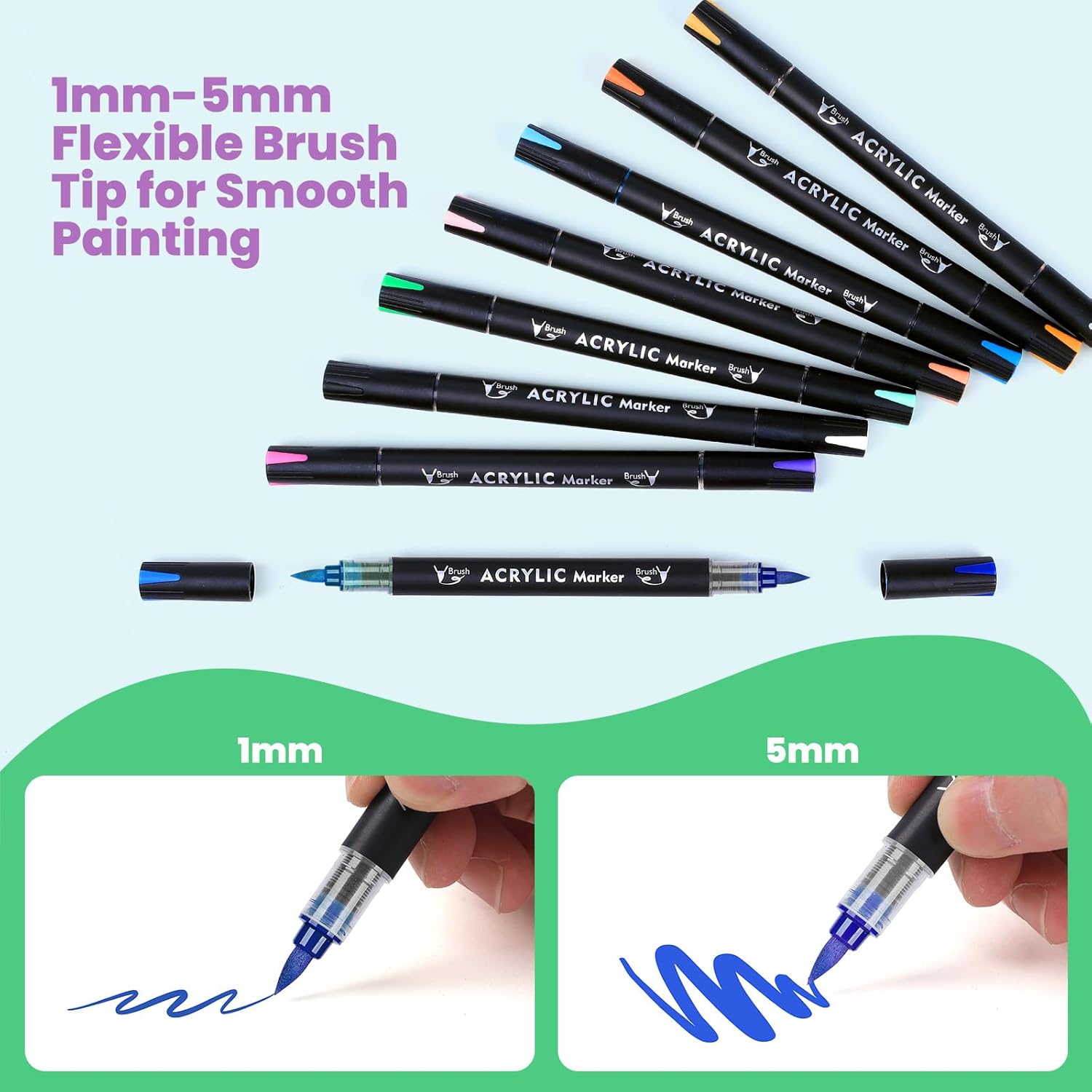 Acrylic Paint Markers 40 Colors 20 PCS Dual Tip Acrylic Markers for Adult Coloring Books No Bleeding Ideal for Glass,Ceramic,Wood,Canvas,Stone,Fabric, Rock Painting, Art Supplies