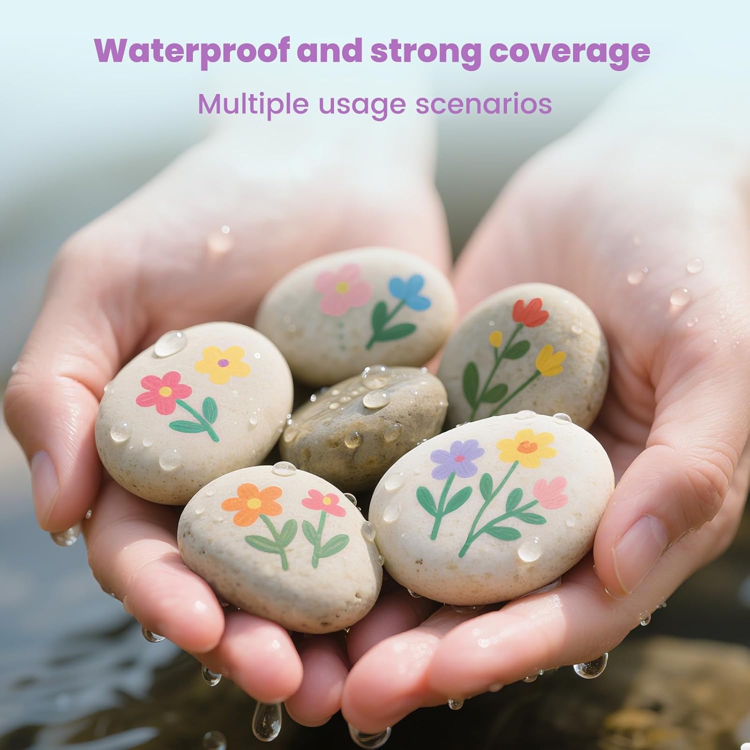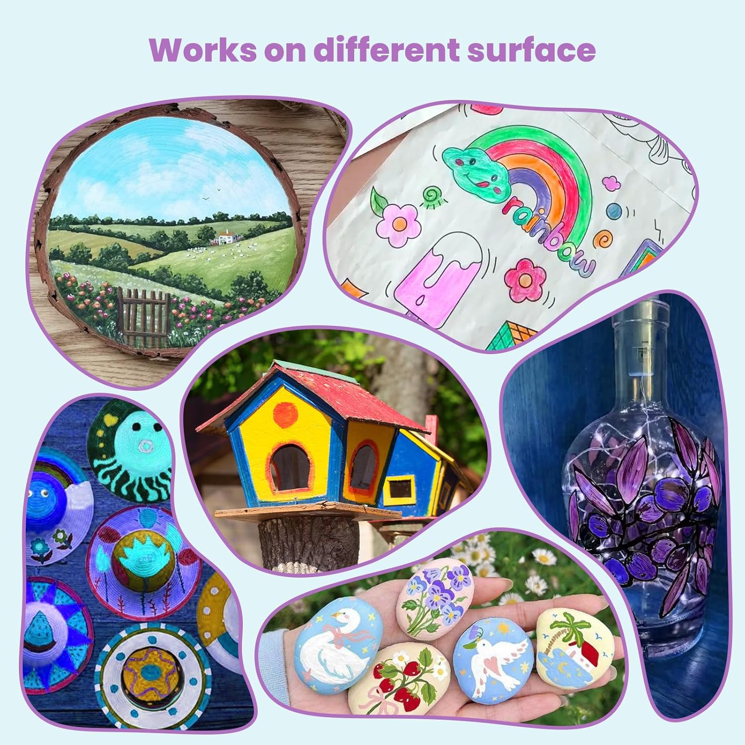 - Ready-to-Use on Virtually Any Surface: Simply uncap and start creating! There's no shaking or priming required for immediate use. Enjoy effortless application on virtually any solid surface such as stones, seashells, canvas, plastic, pottery, and more, making them the ultimate all-in-one crafting accessory