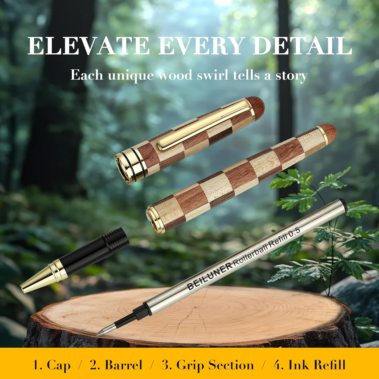 BEILUNER Luxury Wood Ballpoint Pen Writing Set, Chess Style - Elegant Fancy Nice Gift Pen Set for Signature Executive Business Office Supplies - Gift Boxed with Extra Refills (Black)