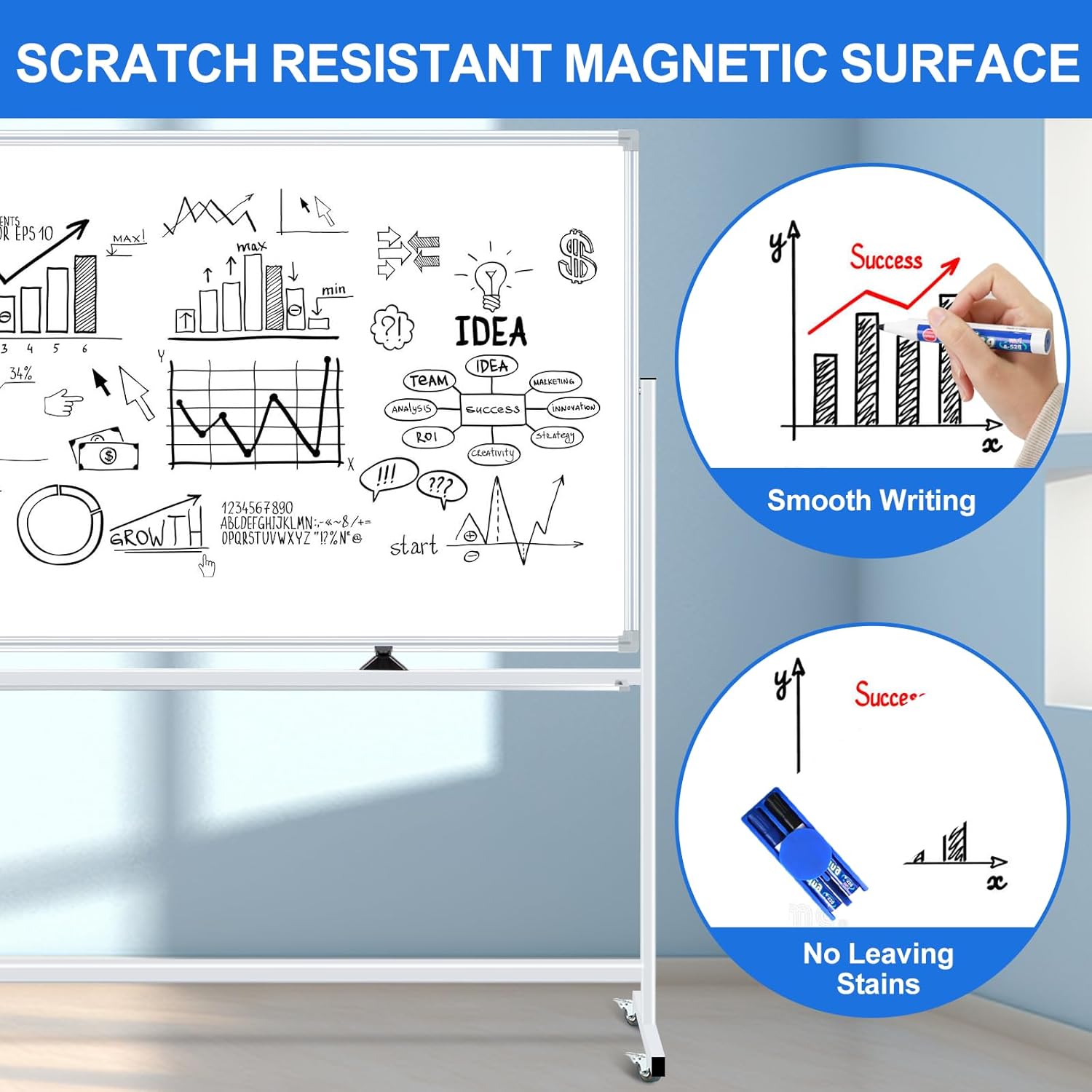 - BUILT TO LAST ---- Whether used in the office, classroom, or home, Max-officoo’s mobile dry-erase whiteboards are designed to hold up over years of frequent use. While other whiteboards will stain or break due to poor construction, our dry-erase whiteboards are known for their durability and reliability when you need it most.