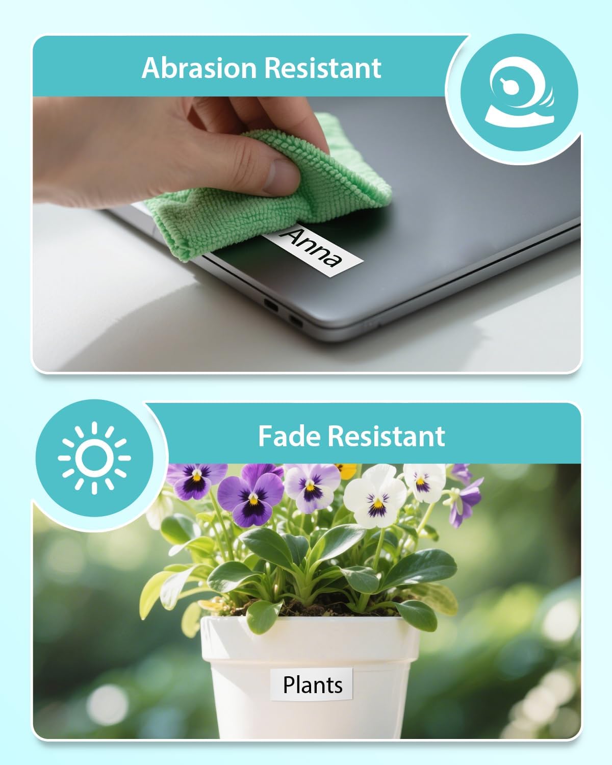 - Feature: The tze-241 label tape compatible for brother ptouch label maker tape tze 18mm 0.7inch laminated white, Split backing for easy peeling, Water Resistant, Fade Resistant, Abrasion Resistant, Chemical Resistant, Temperature Resistant, Print clear labels