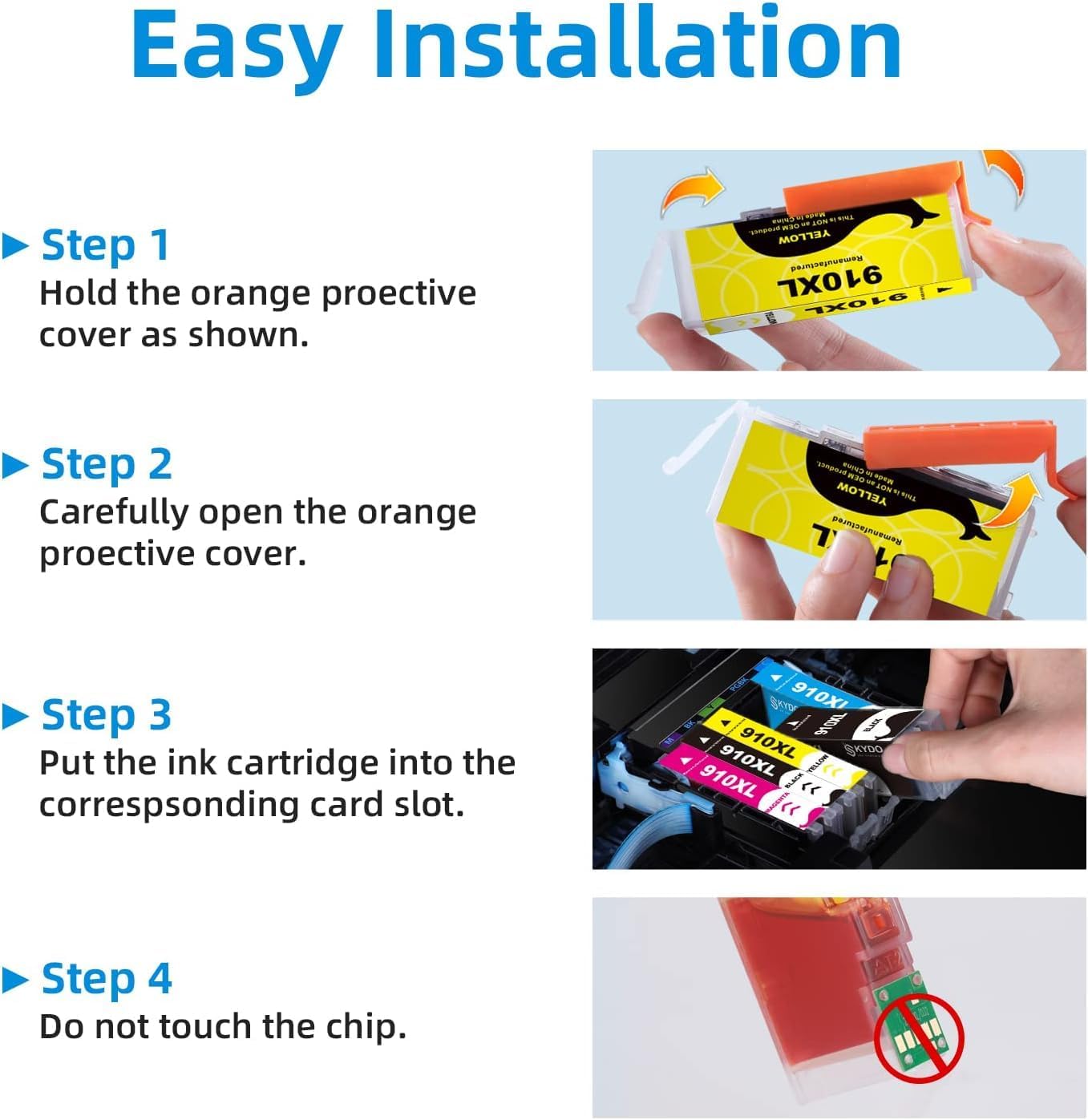 910XL Ink for 910XL Ink Cartridges Combo Pack Replacement Work with OfficeJet 8015e 8022e 8010 8022 OfficeJet Pro 8025e 8028e 8035e 8020 8025 8028 8030 8035 Printers 4 Pack (Black Cyan Magenta Yellow)