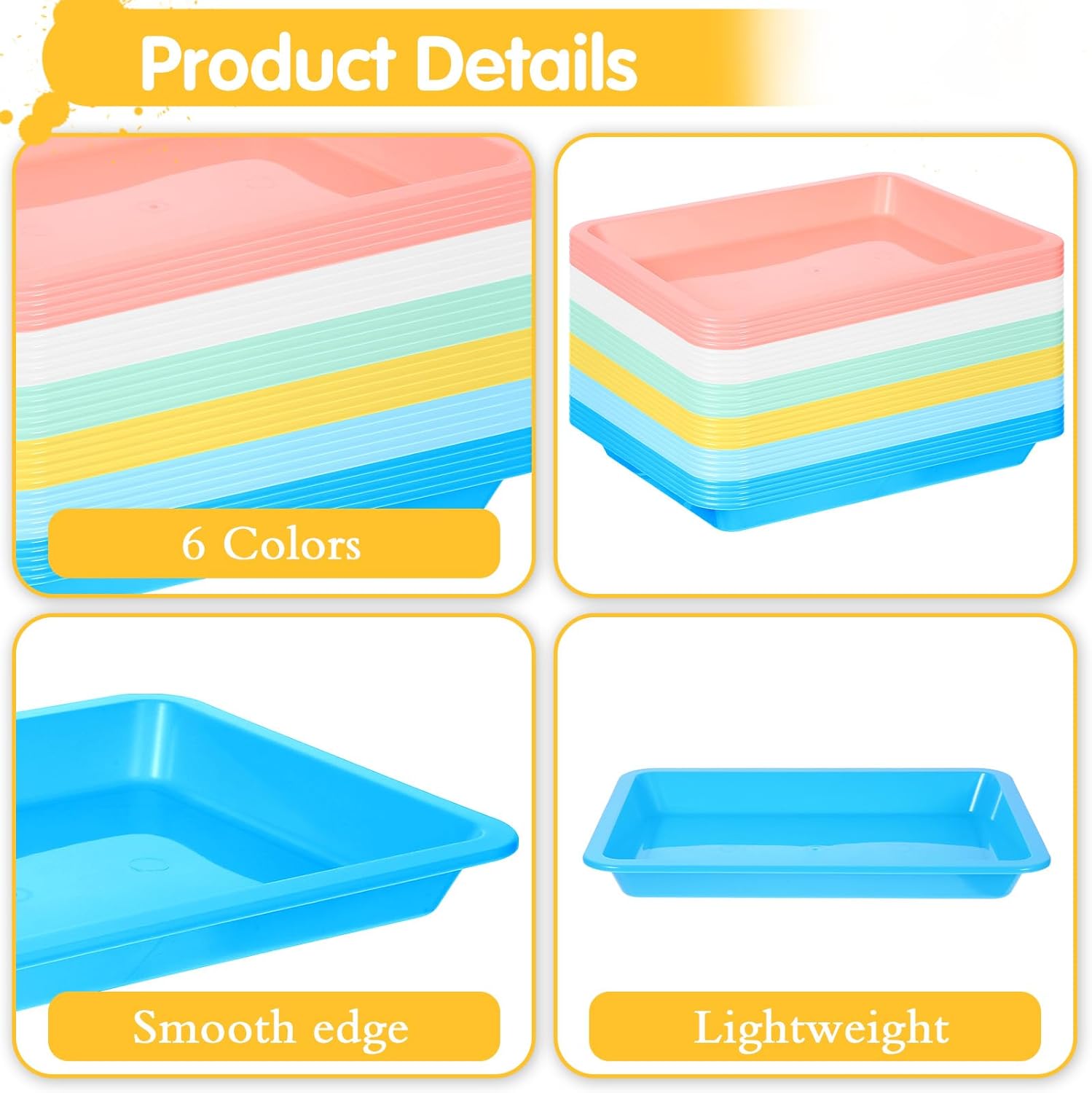 - 【Essential for DIY Projects】There are 24 Pcs plastic trays in 6 vibrant colors, with 4 trays of each color. This set encourages your innovative creativity, making it perfect for various DIY projects and endless artistic possibilities.