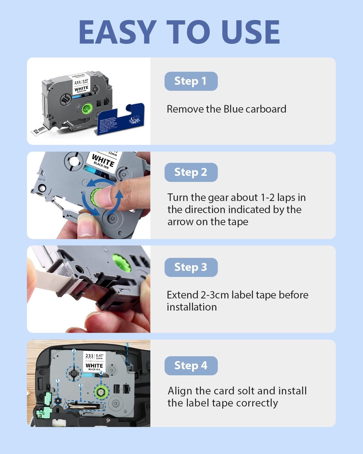 - What's Included: 6-Pack Compatible for Brother Label Maker Tape TZe TZ Tape 12mm 0.47 Laminted Black Ink on White Tape, Replacement for TZe-231 TZe231 TZ-231 Label Tape