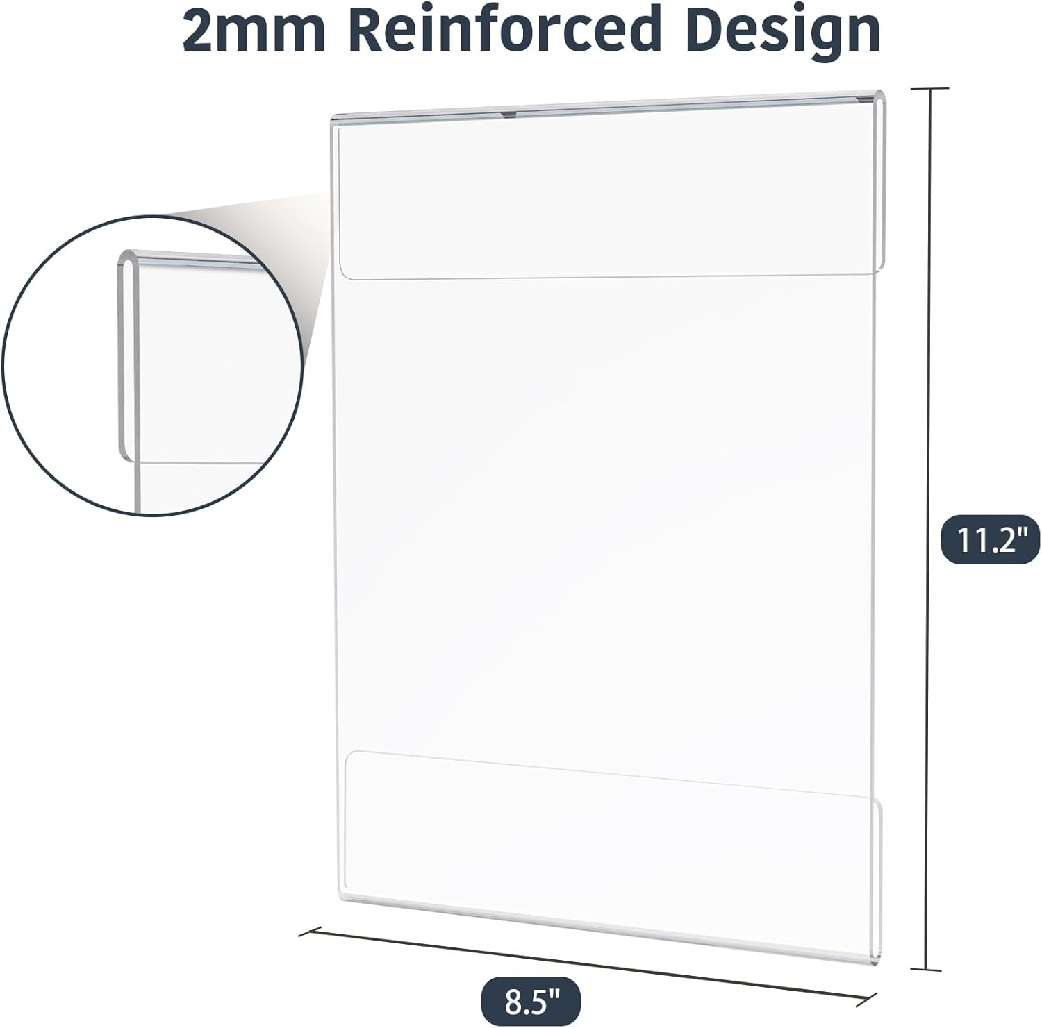 8.5x11 Clear Acrylic Plexi Sign Holders with Double Sided Adhesive Tape, Wall Sign Memo Document Menu Holder for Office, Home, Store, Restaurant-No Drilling (12 Pack)
