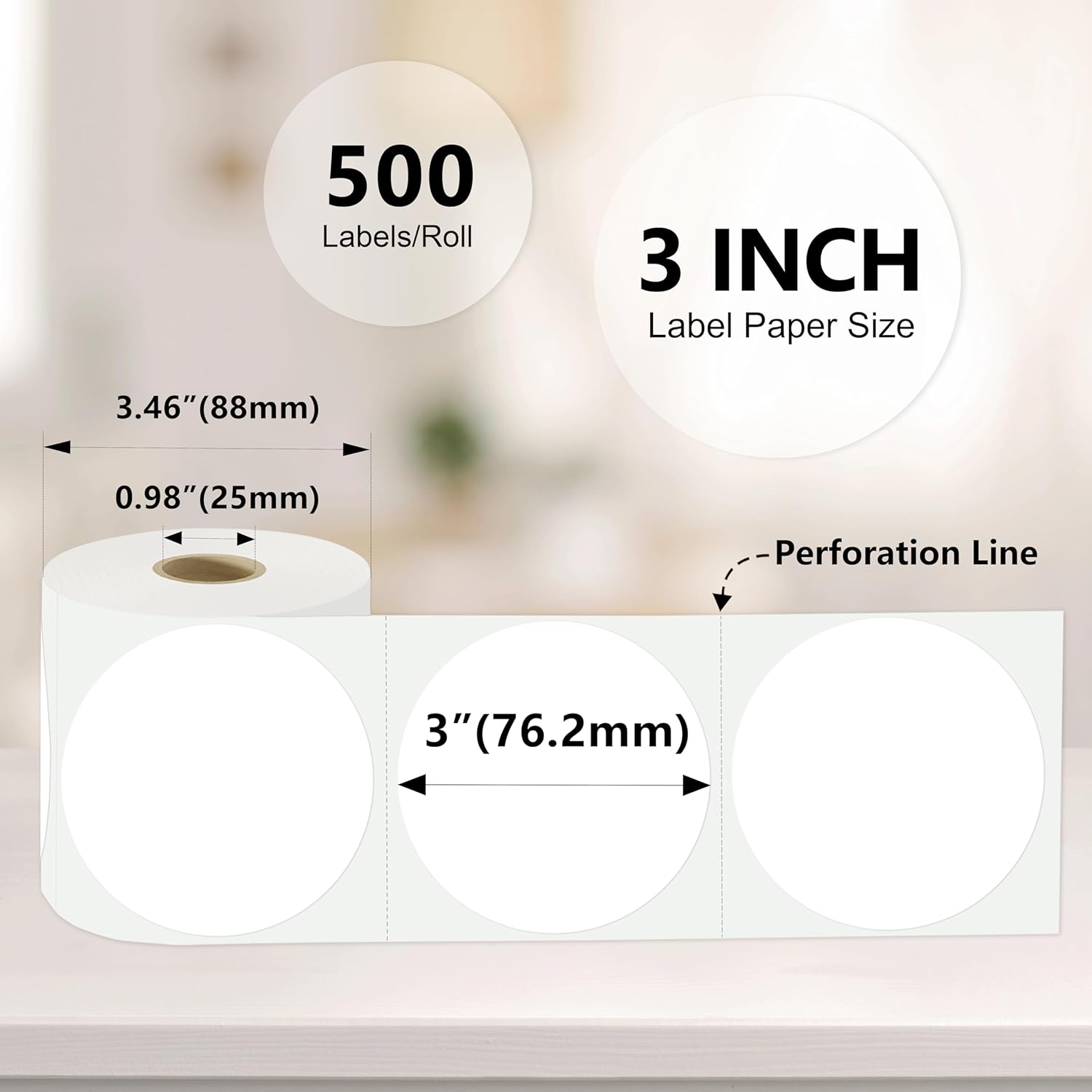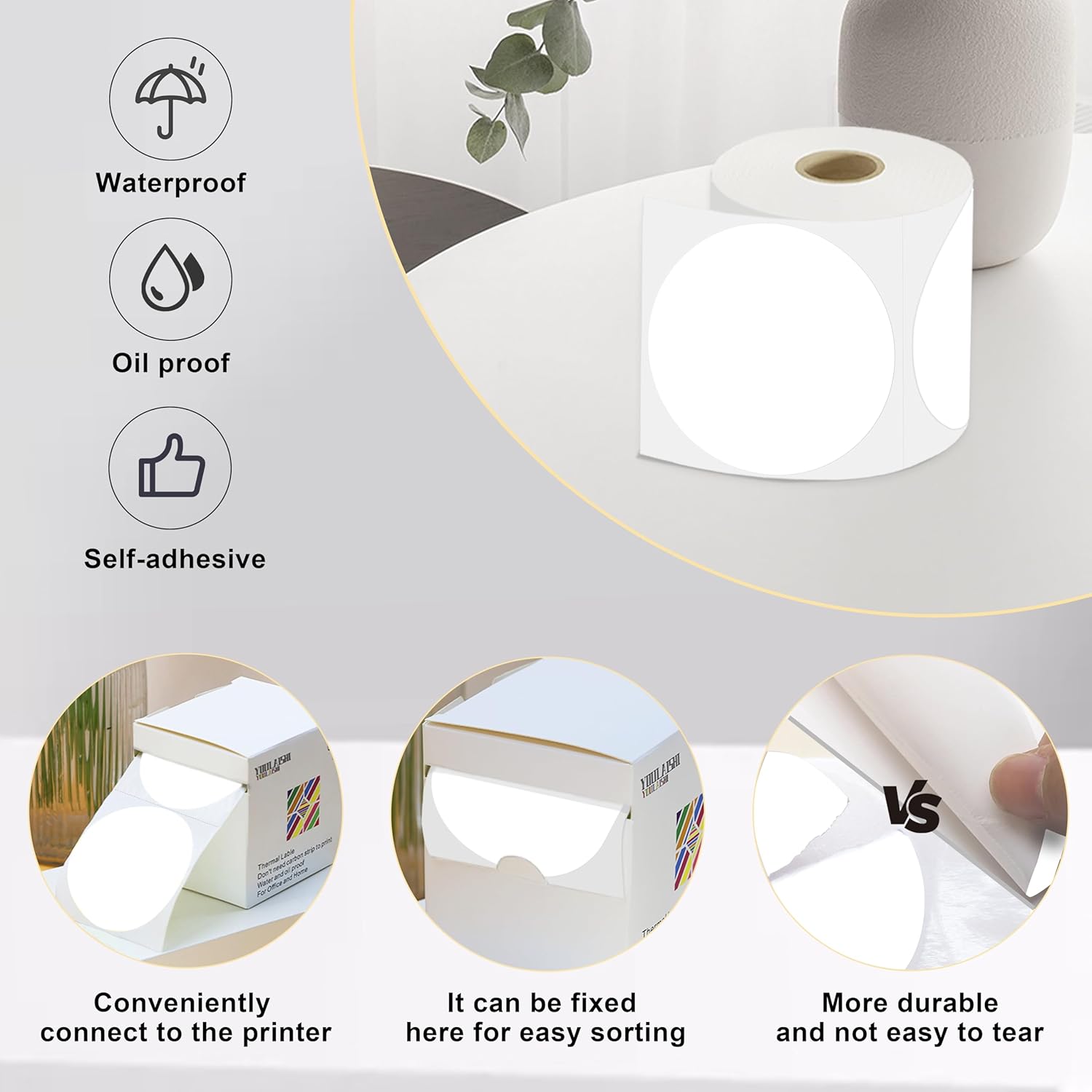 3 X 3 Inch Color Coding Dot Labels Circle White Thermal Printable Waterproof 2000 Pcs Round Stickers Adhesive Writable for Office, Home, Garage, DIY Sticker, Barcodes, Name Tag
