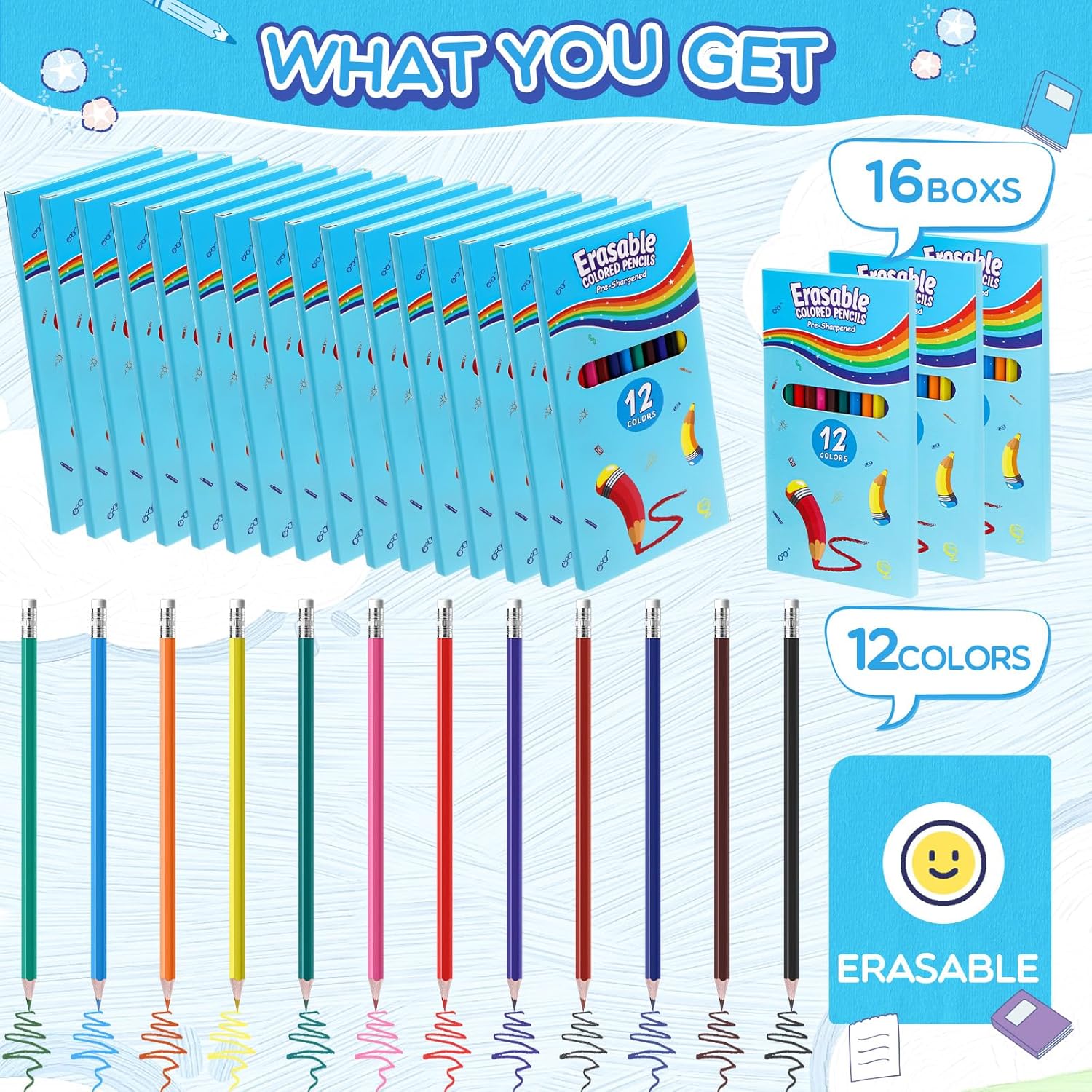 - Vibrant and Smooth Coloring: the package include 16 sets colored pencils with erasers, and each set feature 12 bright and rich colors, total 192 pack colored pencils. Perfect for drawing, sketching, and coloring books; Each erasable colored pencil is designed for smooth application and vibrant results, which ideal for kids, beginners, and artists