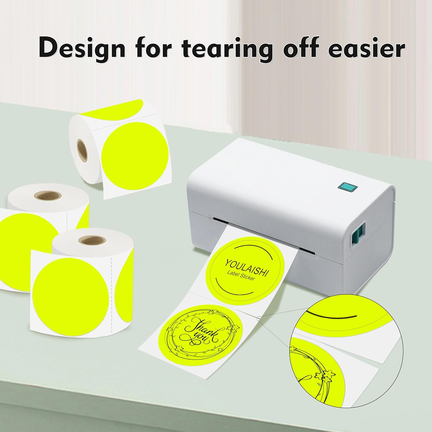 - What You Will Get: 500 colored dot stickers per roll, 2000 piece fluorescent yellow labels in total. 3 x 3inch round stickers are easy to peel and apply from surface, suitable for office, home, garage, DIY sticker, barcodes, name tag