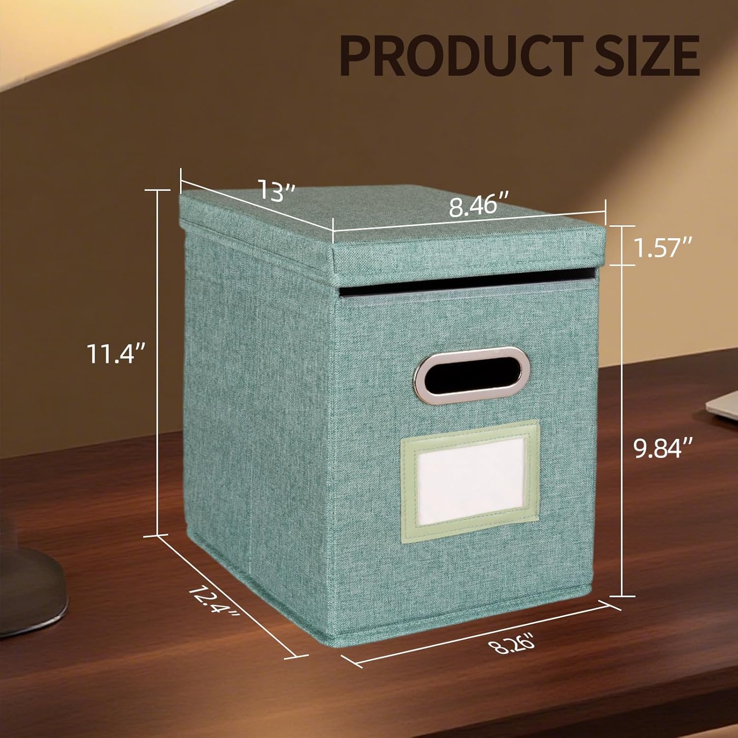 4 Pack Hanging File Folders Organizer with Lid, Letter Size Fabric File Storage Box Collapsible, Portable Office Document Holder with Metal Handle, Smooth PVC Rails, Green