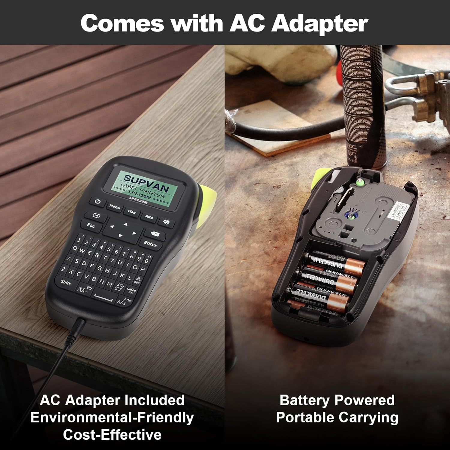 SUPVAN LP5120M Label Maker Machine Bundle (5 Tapes Included) with Keyboard & AC Adapter, Waterproof Thermal Transfer Label Printer with Ik+ Icons for Garage, Home, Office Organization