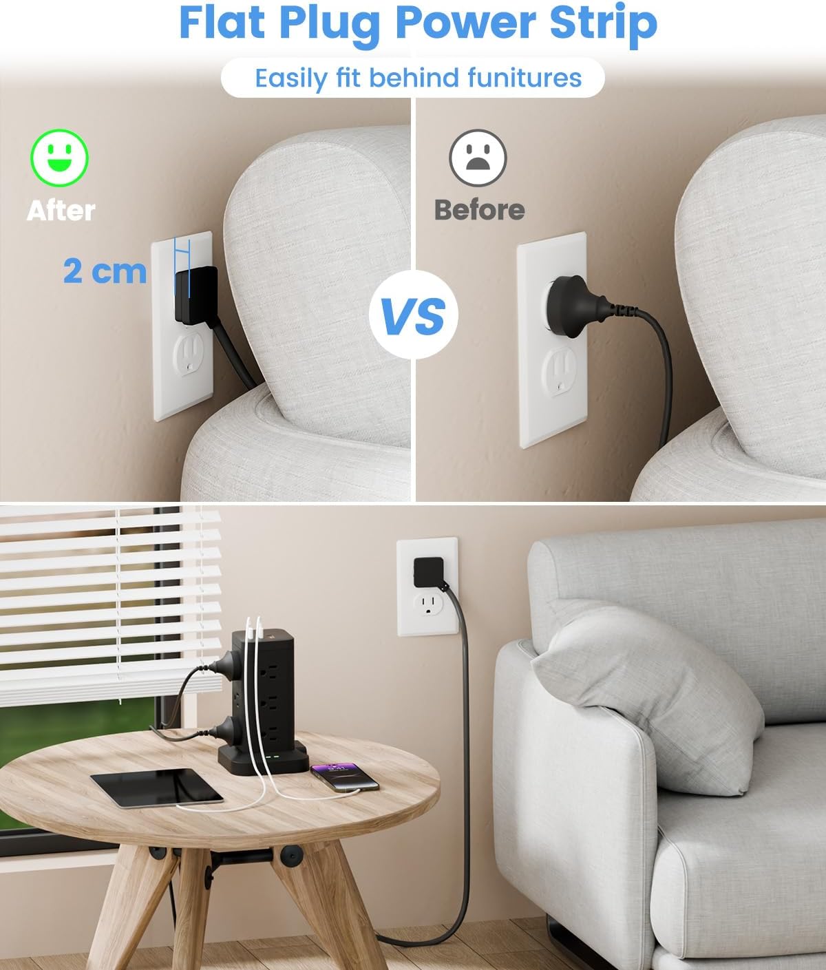 - Safety & Durable Surge Protector Tower: With 1800J Surge Protector prowides overload protection, short-circuit protection, and over-current protection, ensures your electronics stay safe. the extension cords not only long enough but also heavy duty to enhance safety and durability.