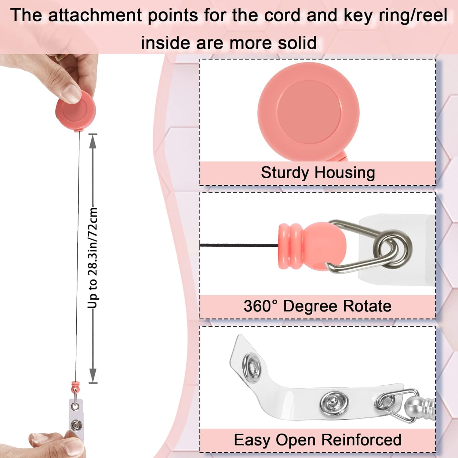 - Reliable material: This badge holder retractable clip is made of ABS material and metal, sturdy. The badge clips string is made of great-quality nylon material, strong and not easy to break. The retractable string is 28.3 inches (72 cm) long, can rotate 360°, ensuring no friction when stretched, easy to pull in any direction, convenient for scanning cards and unlocking in the office environment