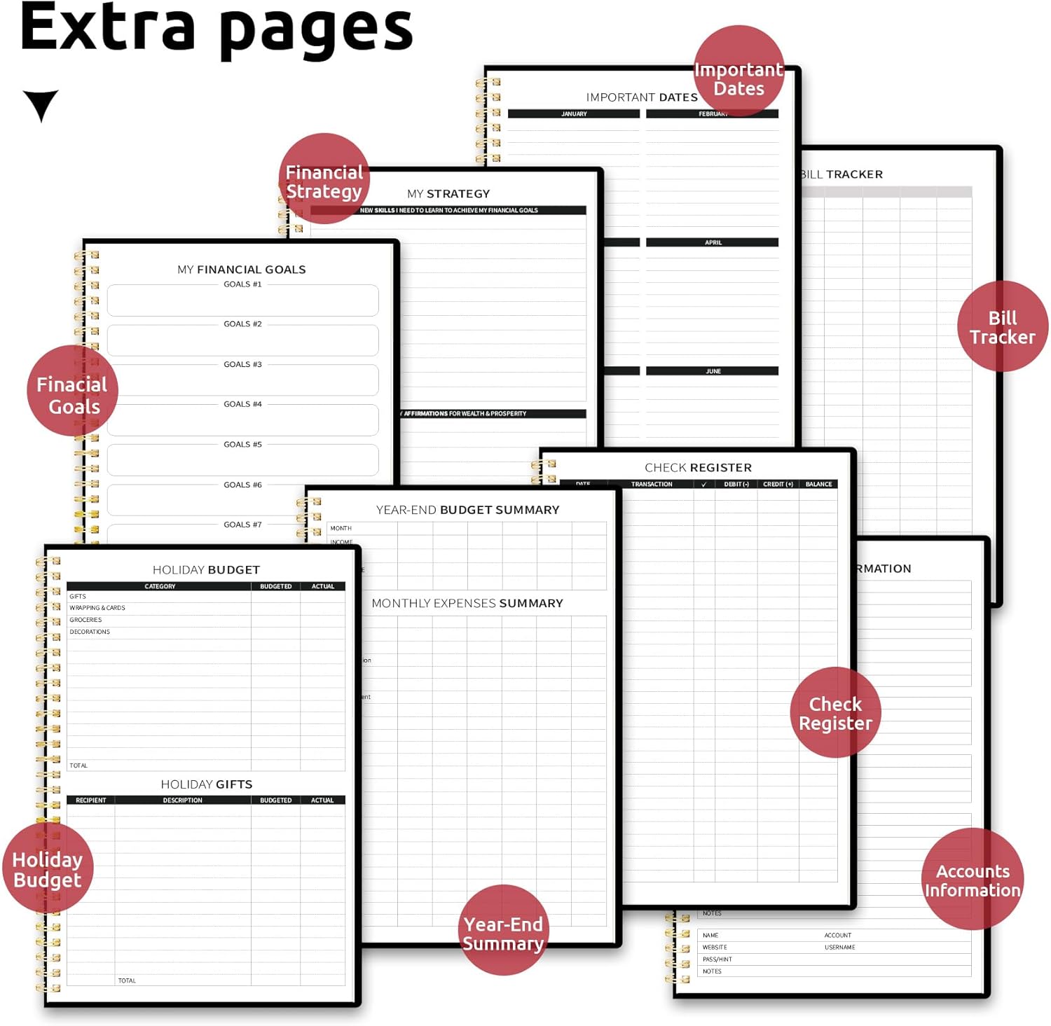 - Full-Page Calendars & Bonus Stickers - Featuring full-page calendars each month, you'll have ample space to mark paydays, bills due, appointments, and important dates. Say goodbye to cramped boxes and difficult writing spaces. Plus, we've included 3 cute sticker sheets that allow you to personalize your financial organizer and make budgeting more fun.