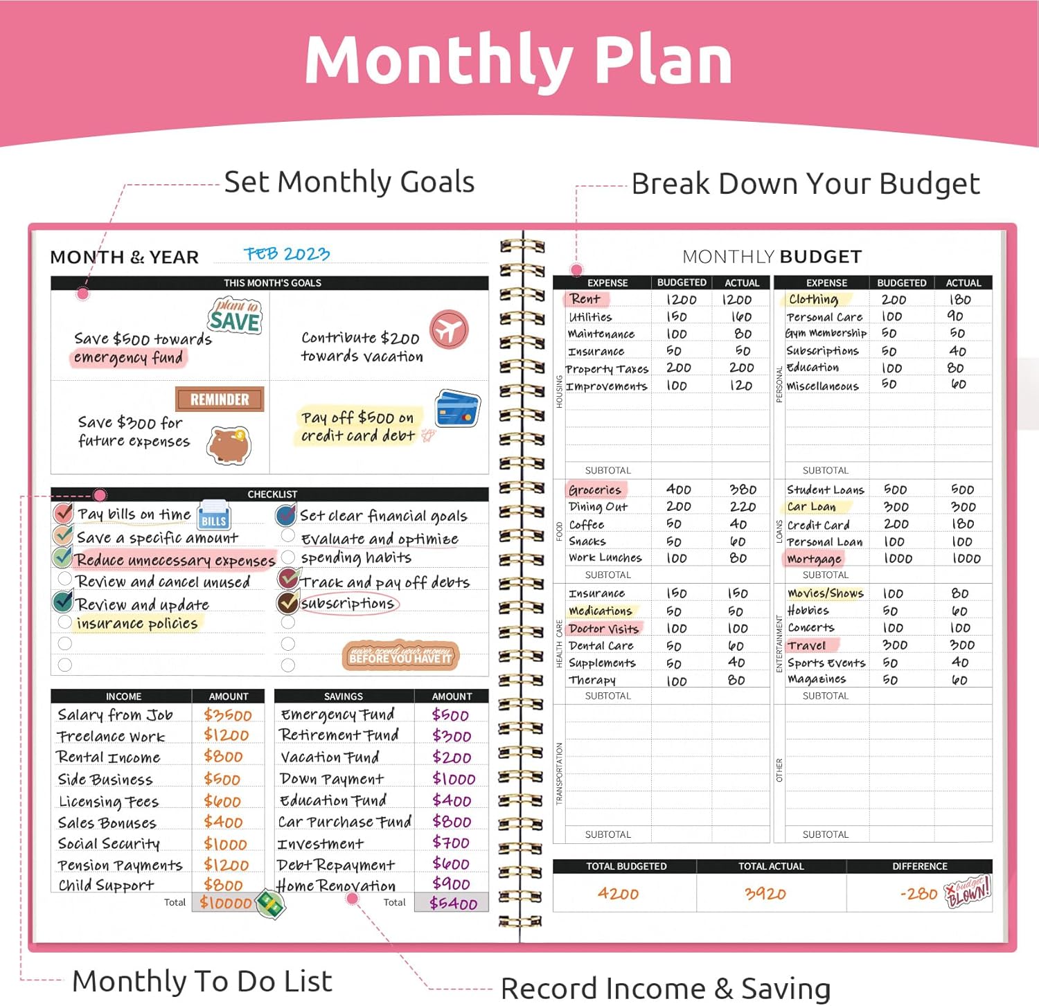 - Full-Page Calendars & Bonus Stickers - Featuring full-page calendars each month, you'll have ample space to mark paydays, bills due, appointments, and important dates. Say goodbye to cramped boxes and difficult writing spaces. Plus, we've included 3 cute sticker sheets that allow you to personalize your financial organizer and make budgeting more fun.